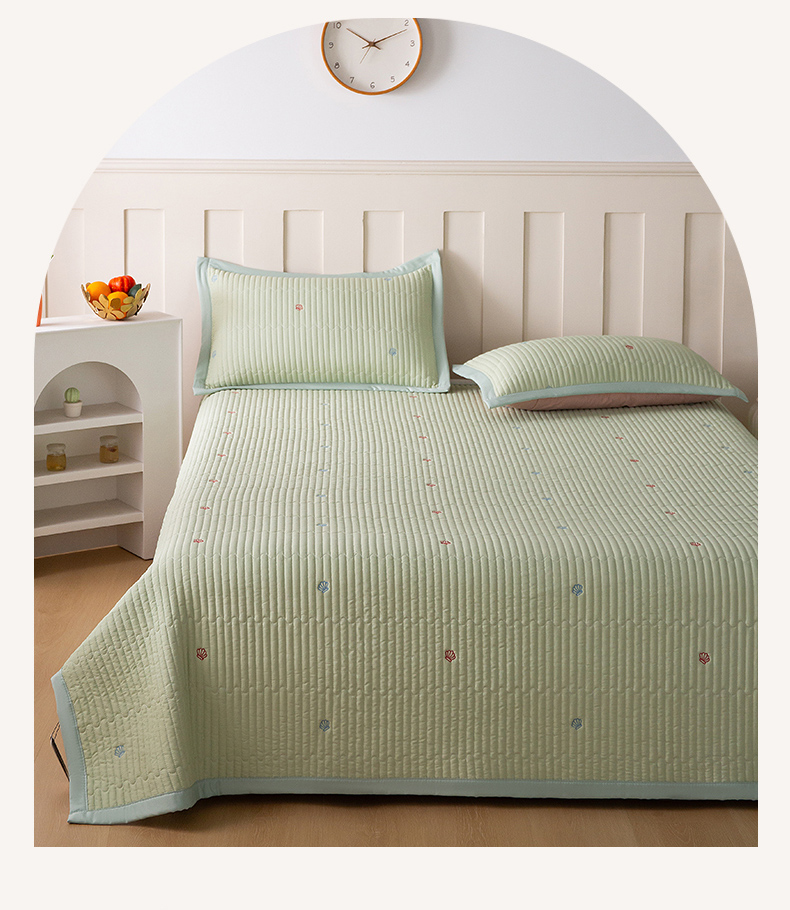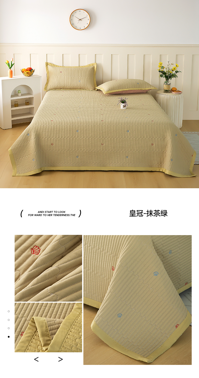 商品名称:晨晨家纺 2025新款A类莱赛尔天丝刺绣款凉席席子床盖款系列三件套 皇冠-薄荷绿