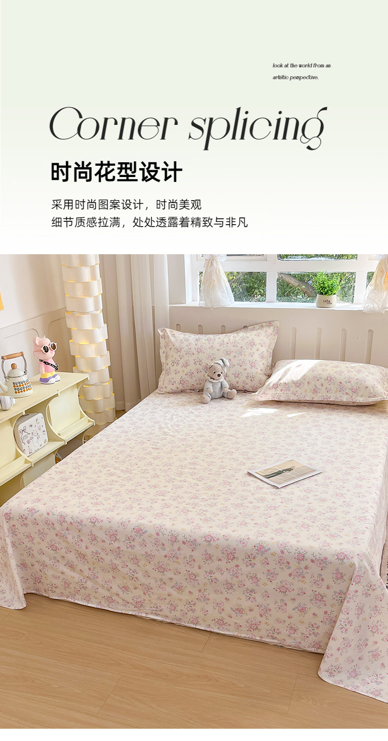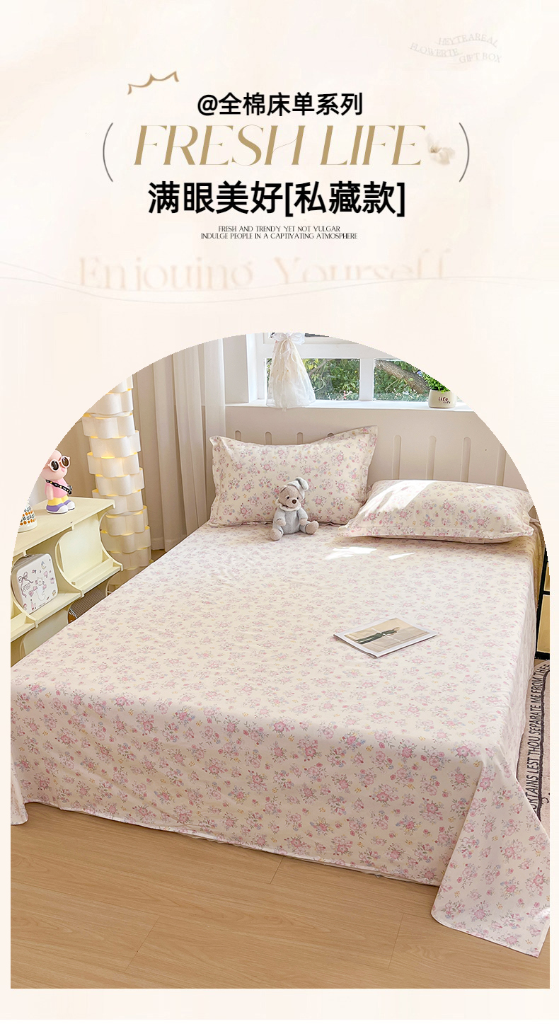 • 91家纺网 家纺一手货源 找家纺 大吉 2025新款亲肤舒适全棉纯棉喷气小清新印花系列单床单床单单件单品床单 梦幻花园