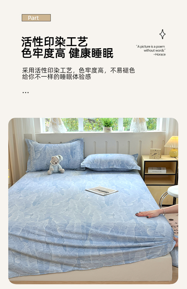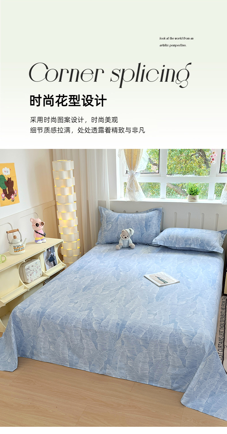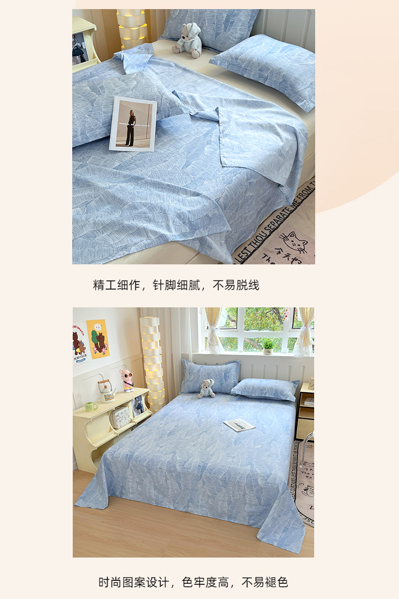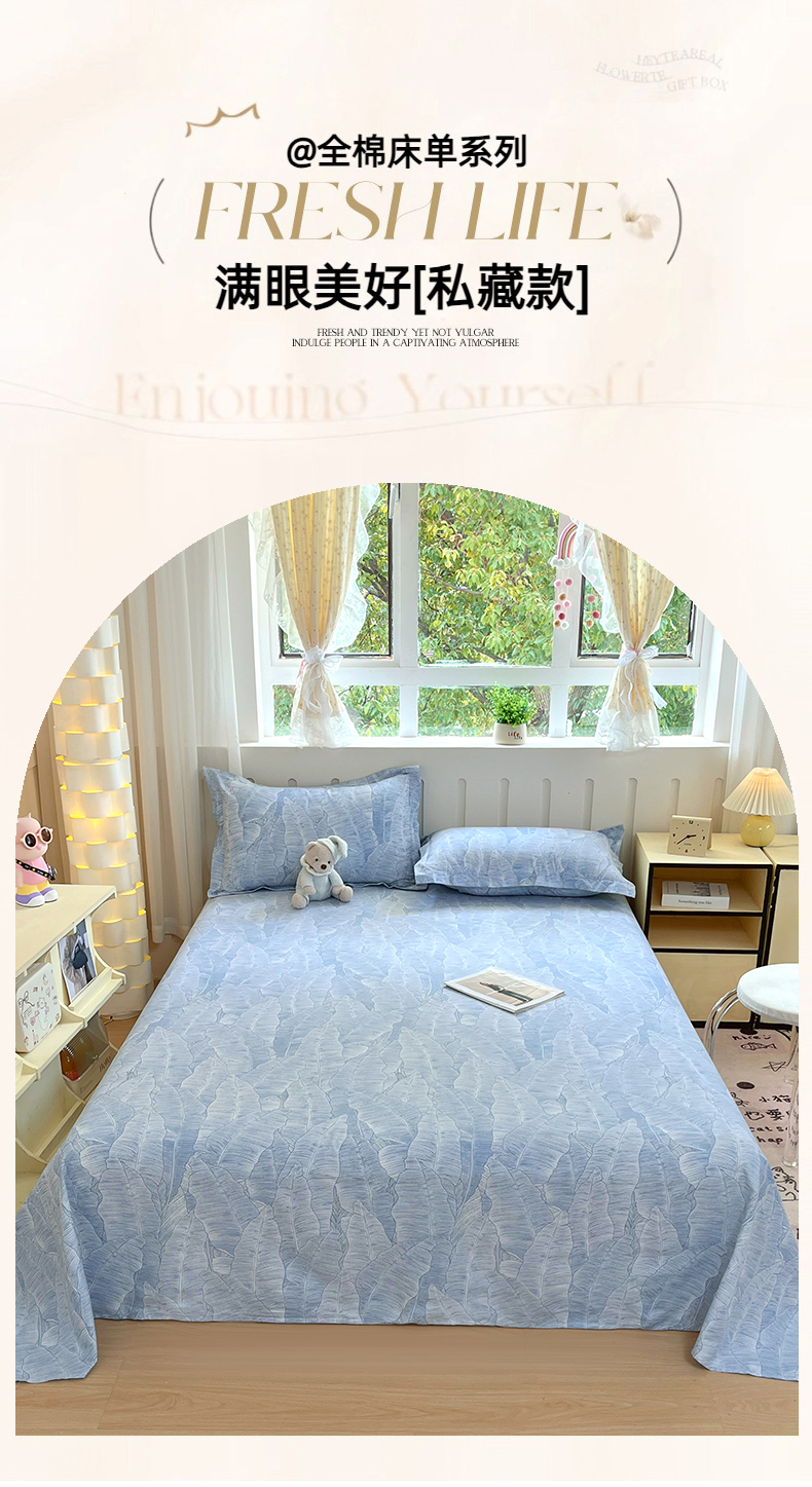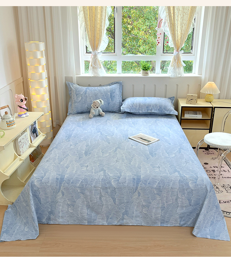 • 91家纺网 家纺一手货源 找家纺 大吉 2025新款亲肤舒适全棉纯棉喷气小清新印花系列单床单床单单件单品床单 雨落芭蕉
