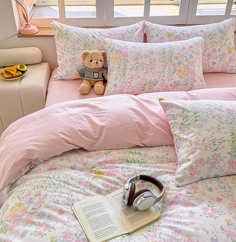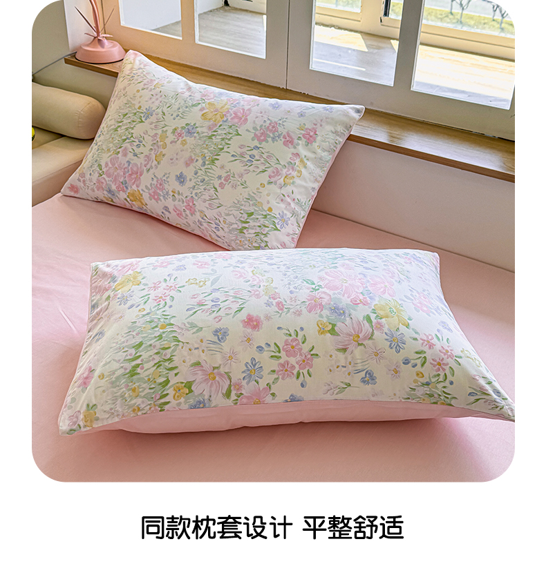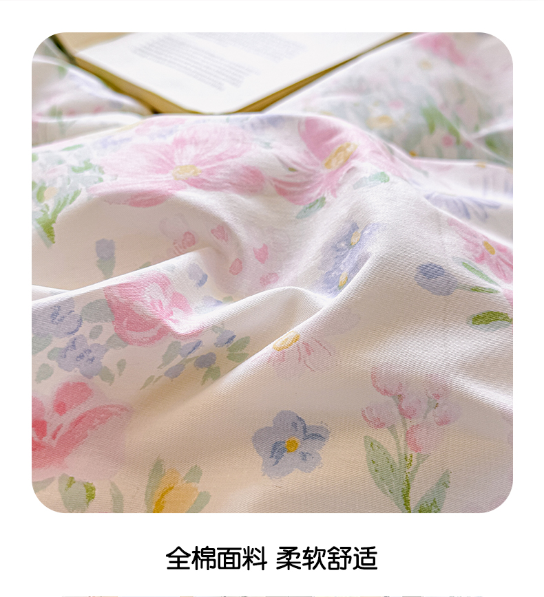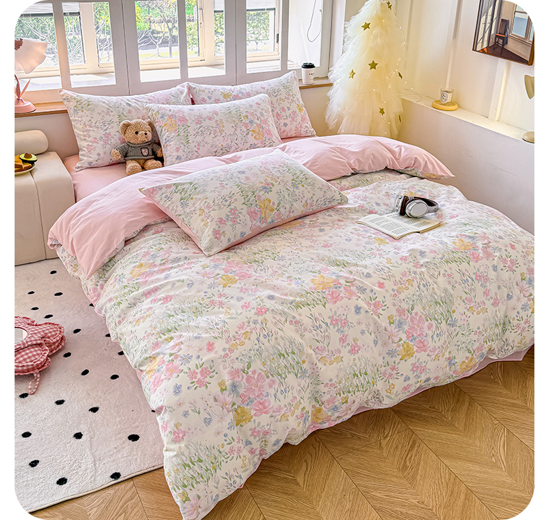 商品名称:芊寻家居 2025新款13372全棉印花系列四件套 花丛 粉