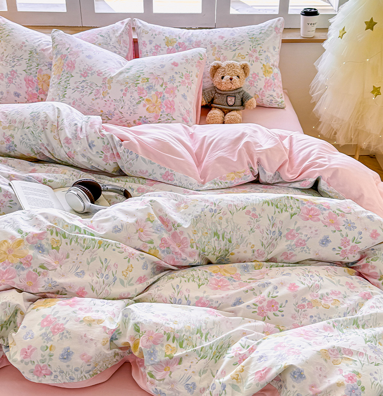 芊寻家居 2025新款13372全棉印花系列四件套 花丛 粉
