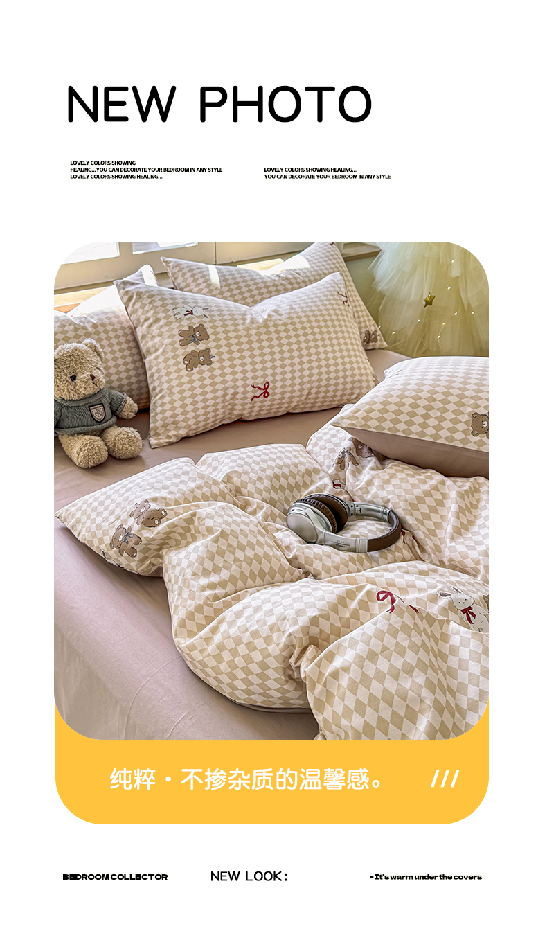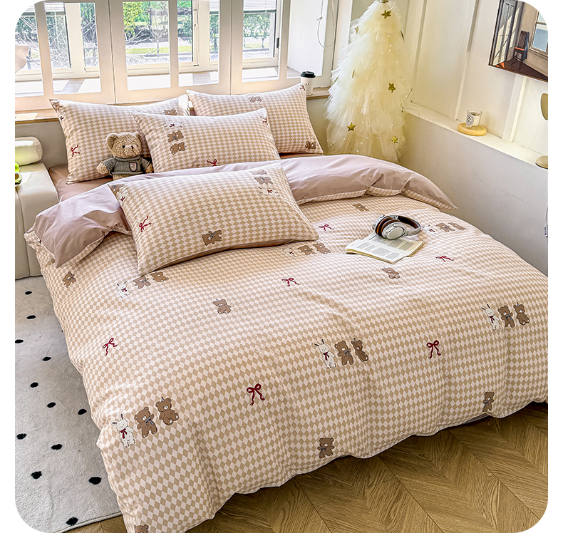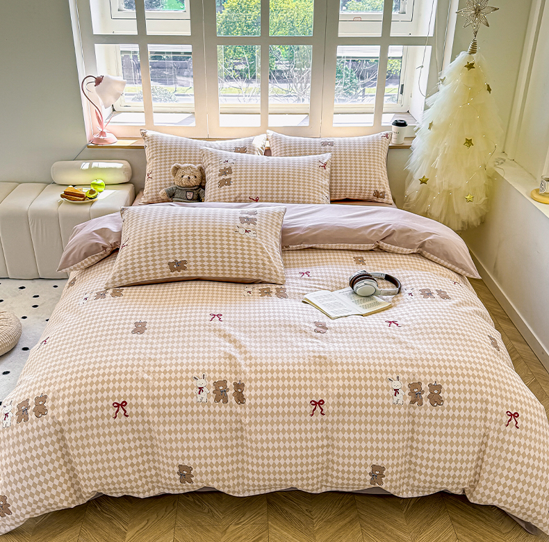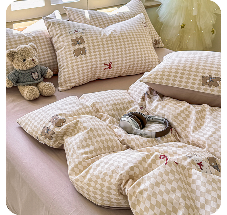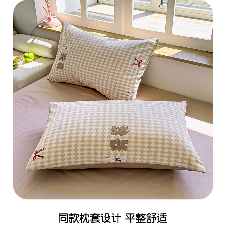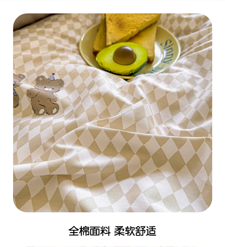 芊寻家居 2025新款13372全棉印花系列单被套 小熊日记 棕