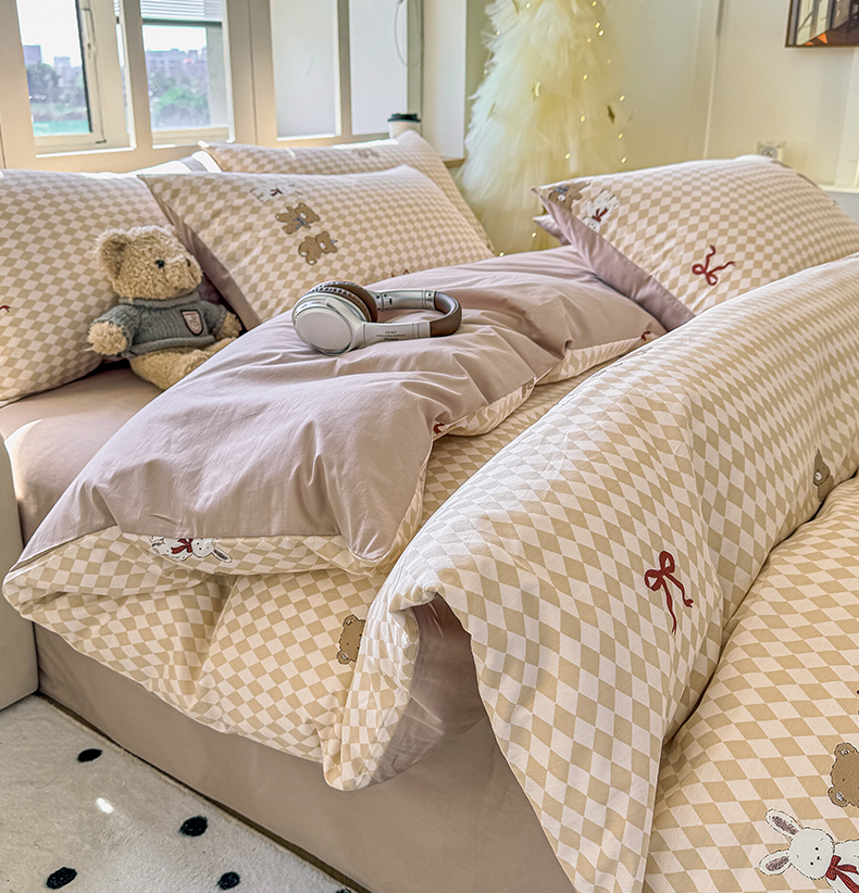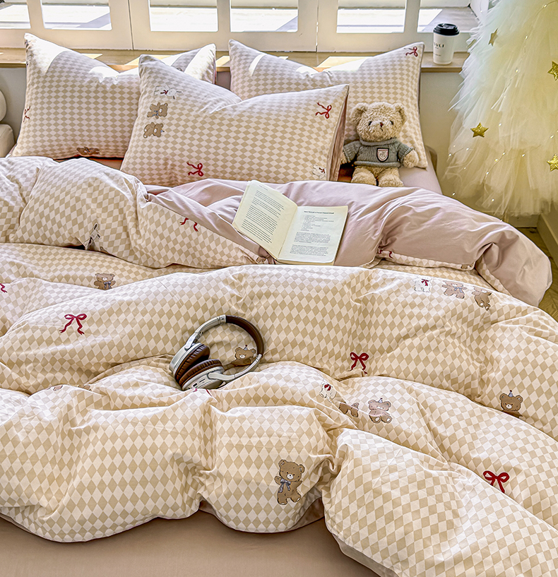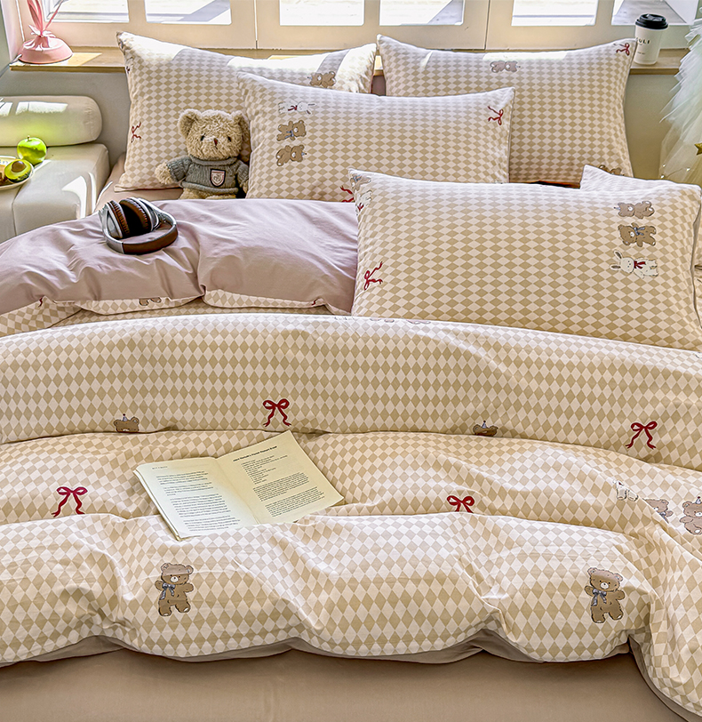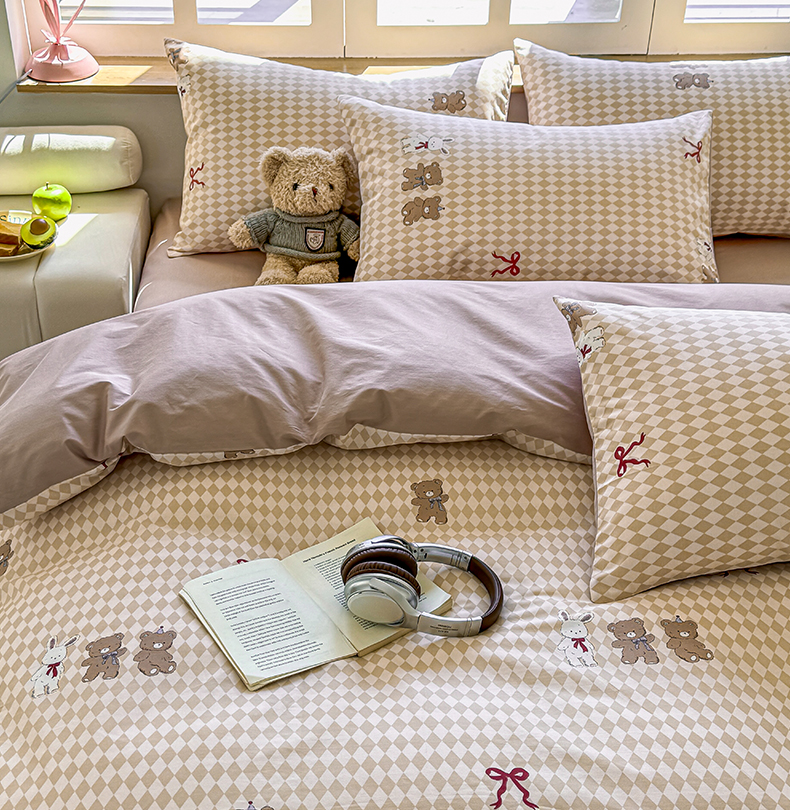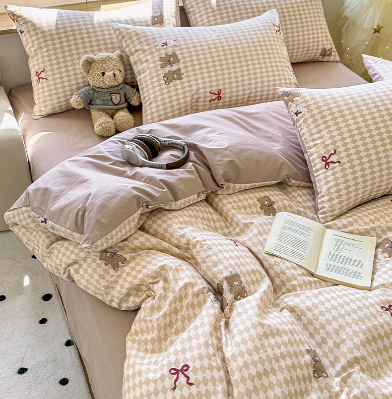 芊寻家居 2025新款13372全棉印花系列单被套 小熊日记 棕