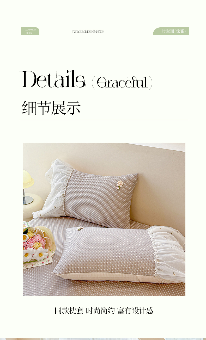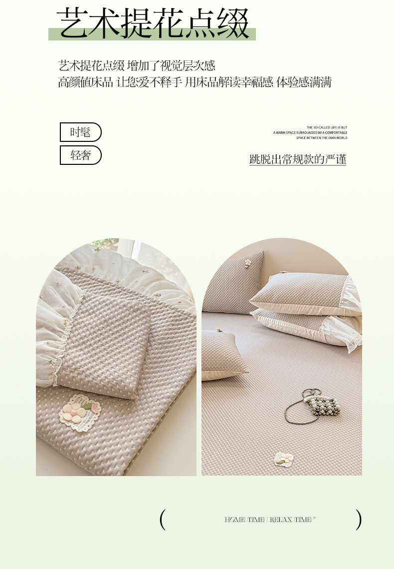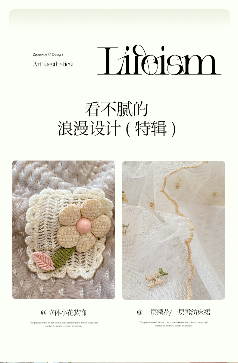商品名称:蓝邻家纺 2025春夏新款PE提花雪纺+绣花花边凉席席子 夏花-米灰