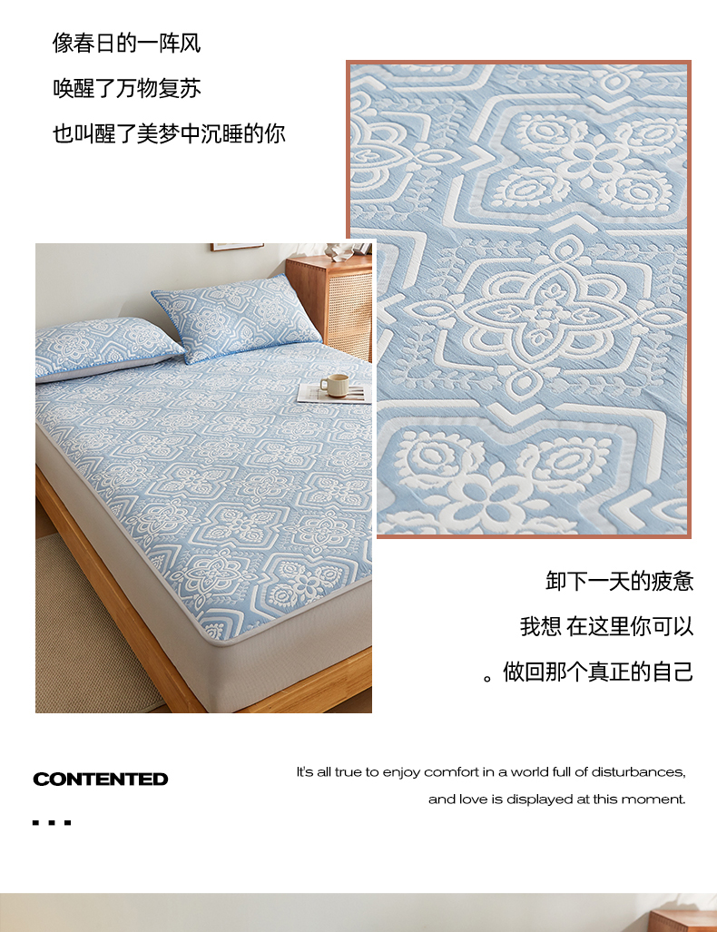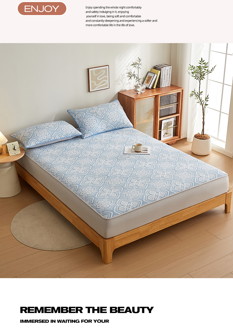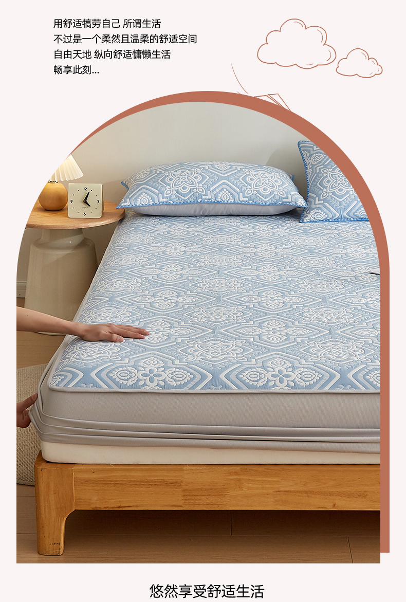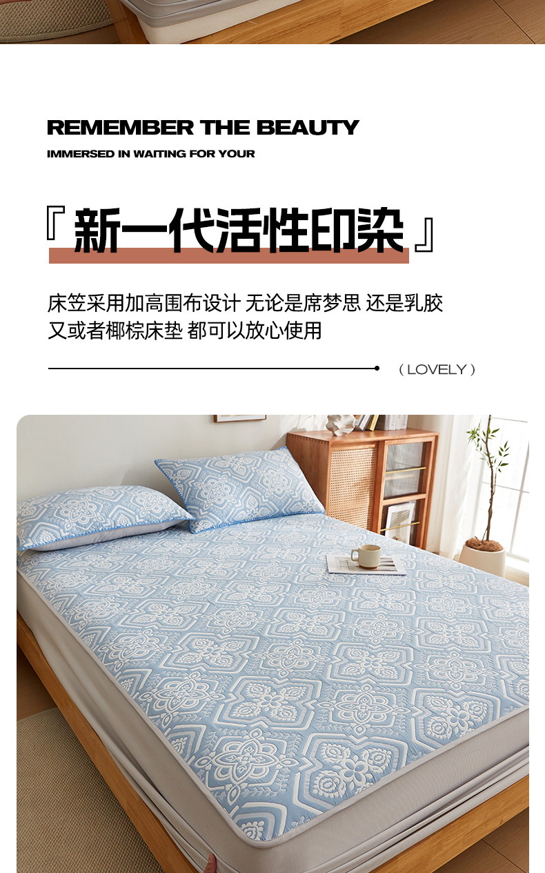 (总)梦镜家纺 2025新款A类云感水洗棉印花床褥(含买家秀),拉布大王,奶油块块,银河,海盐汤圆,生日宴会-蓝,少女象