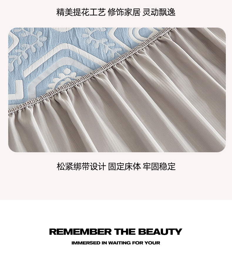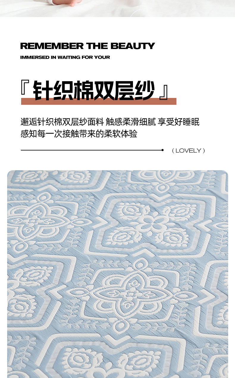 商品名称:梦镜家纺 2025新款A类针织双层纱床笠 花韵-薄雾蓝