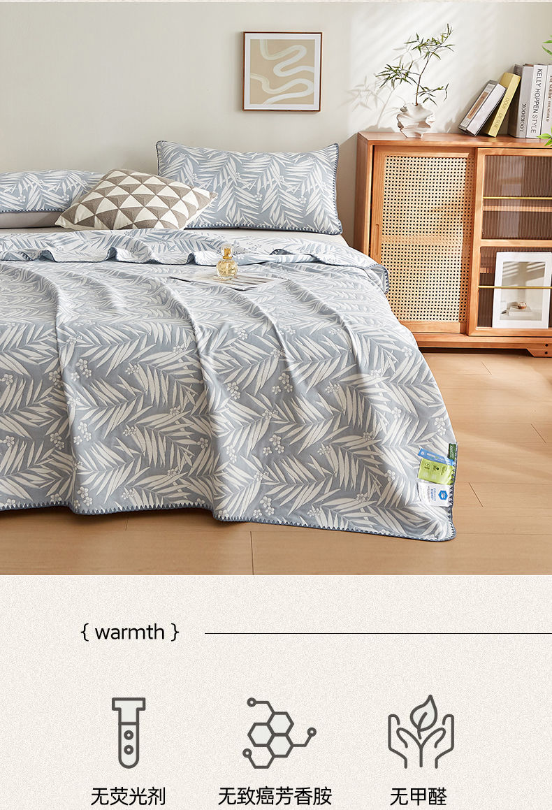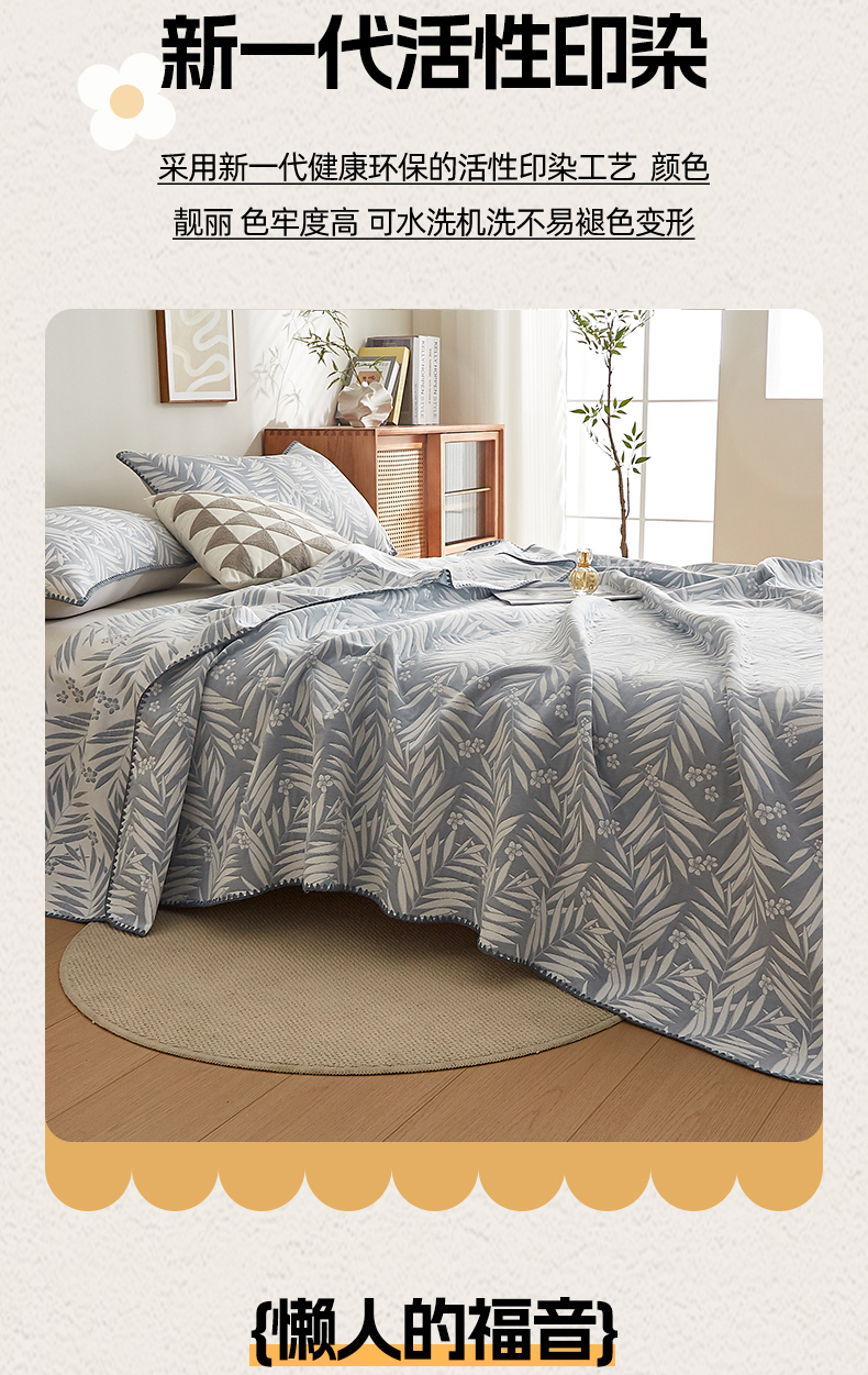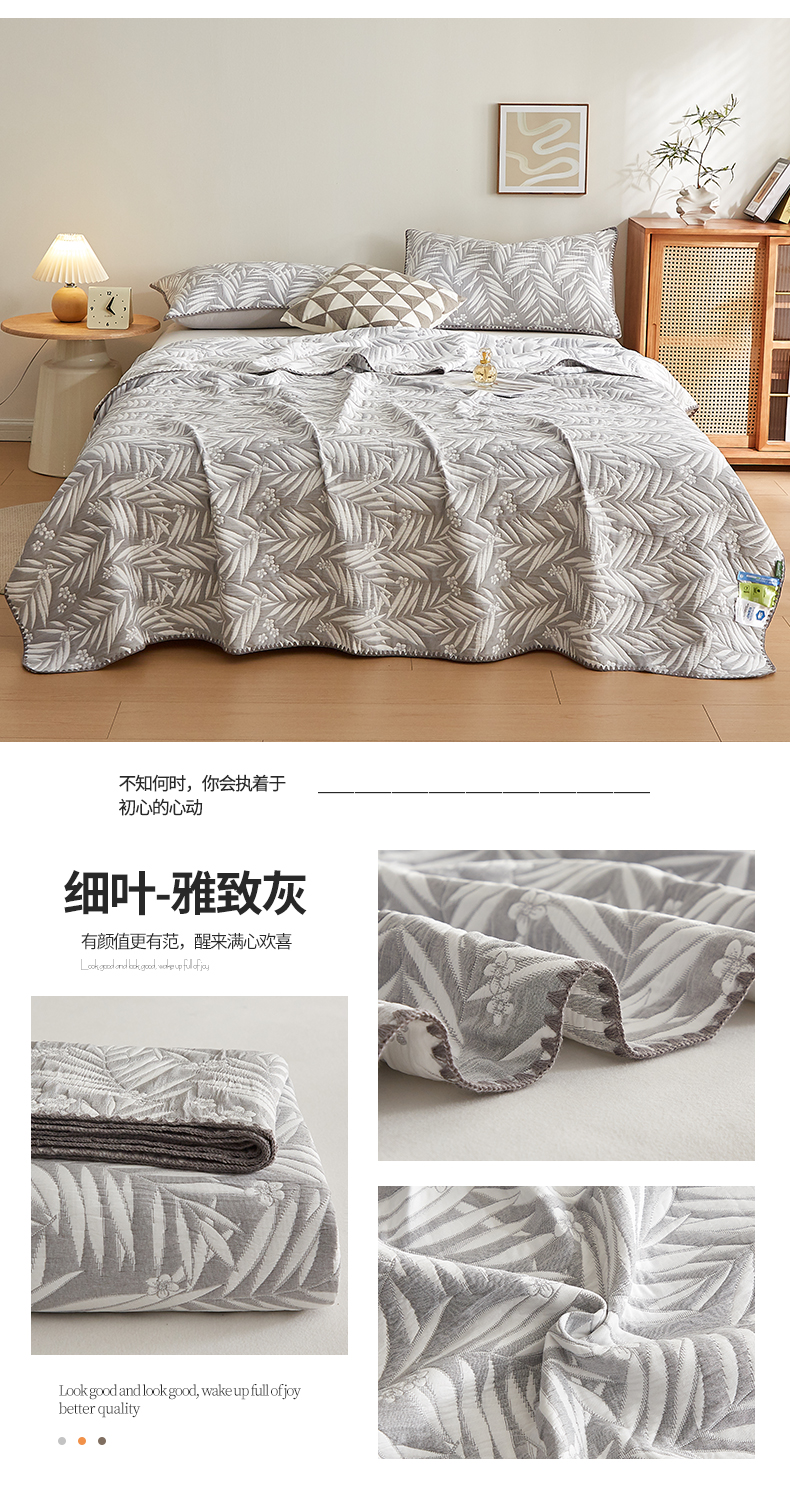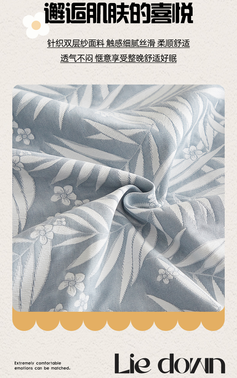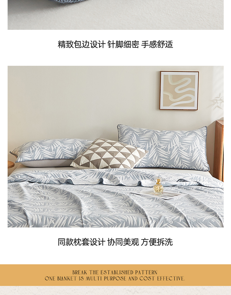 商品名称:梦镜家纺 2025新款A类针织双层纱盖毯毯子 细叶-浅蓝灰