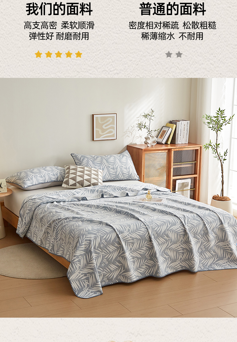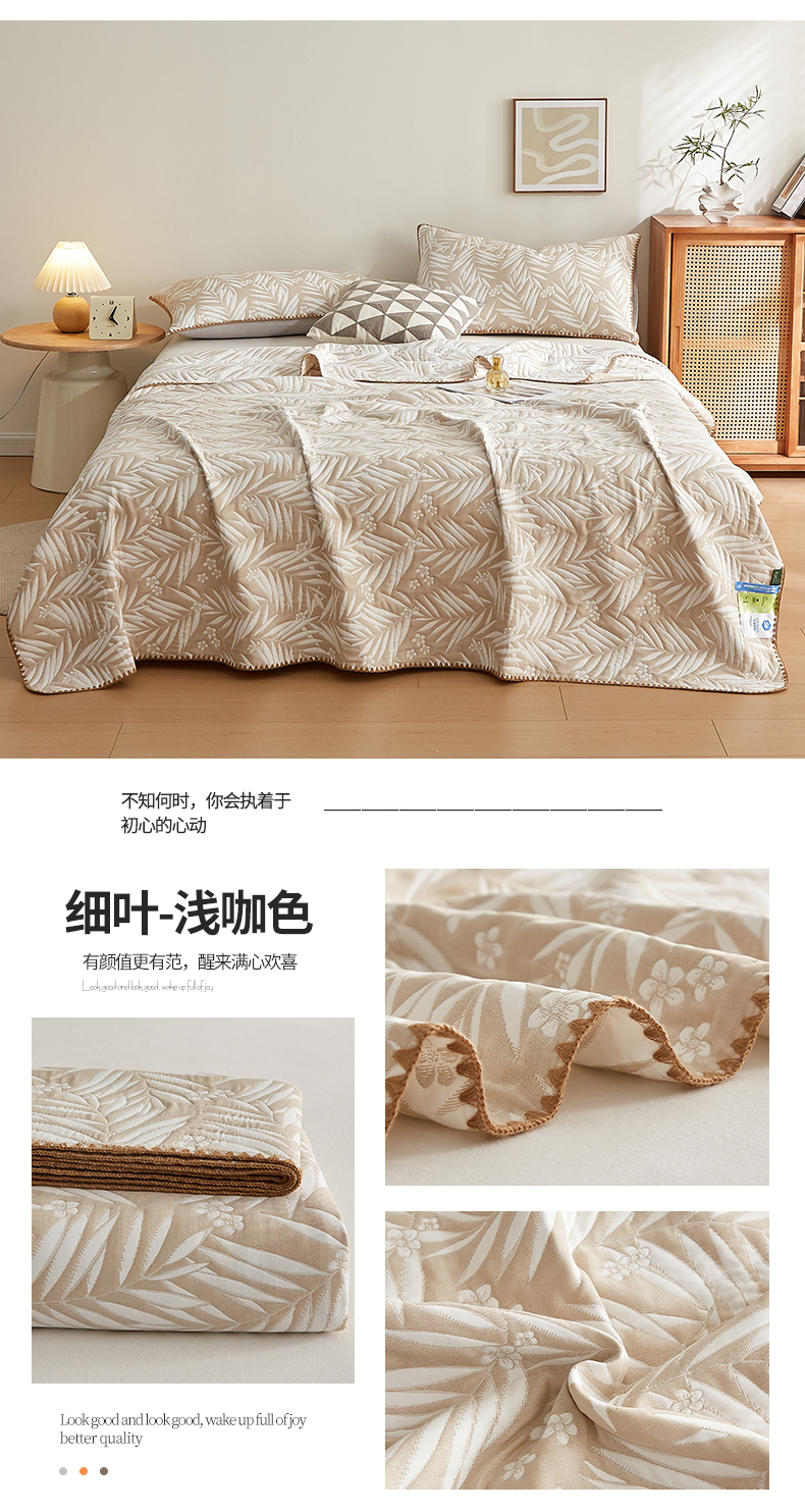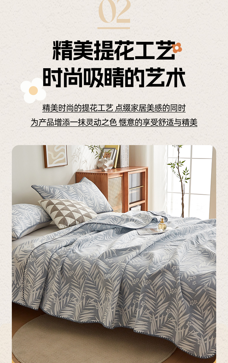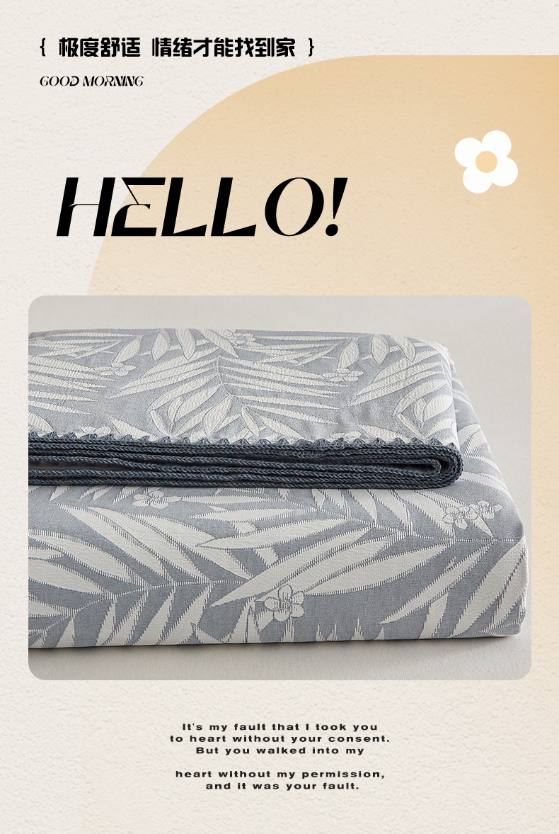 商品名称:梦镜家纺 2025新款A类针织双层纱盖毯毯子 细叶-浅蓝灰