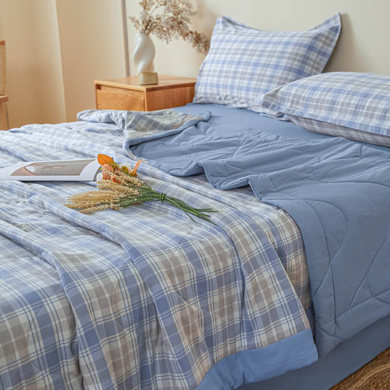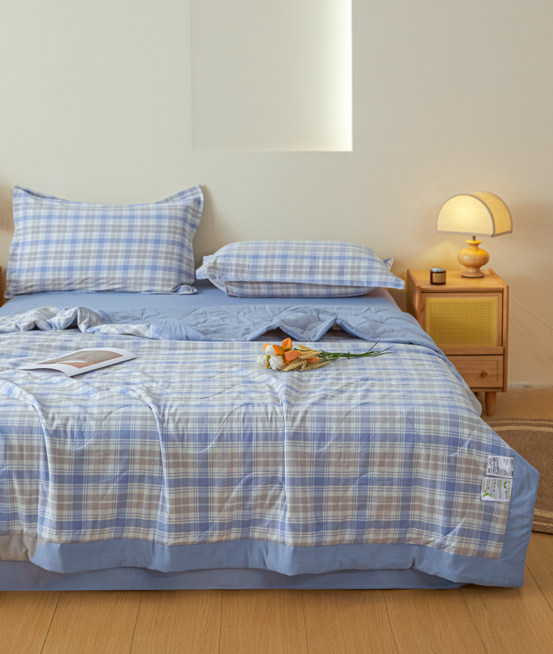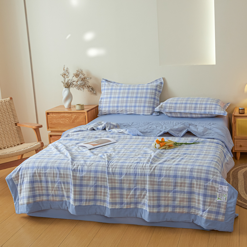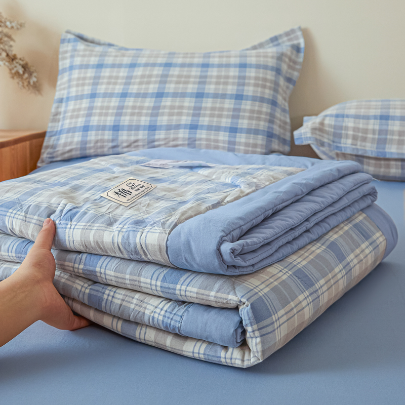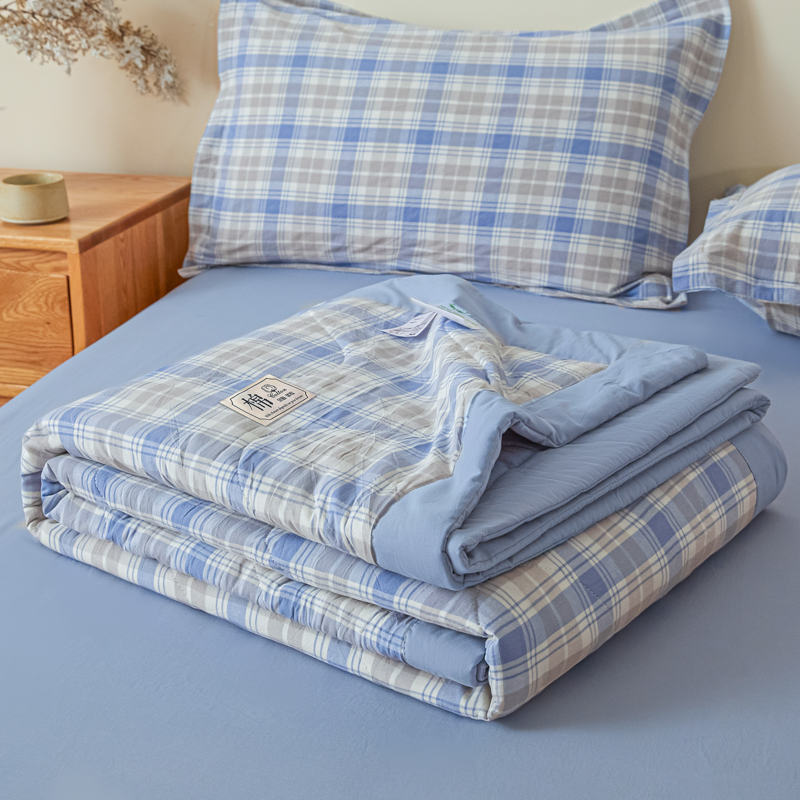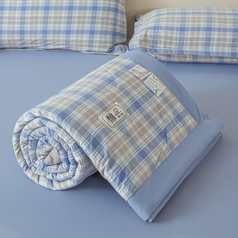商品名称:2025新款A类色织新疆棉抗菌夏被棉花被 蓝黄格