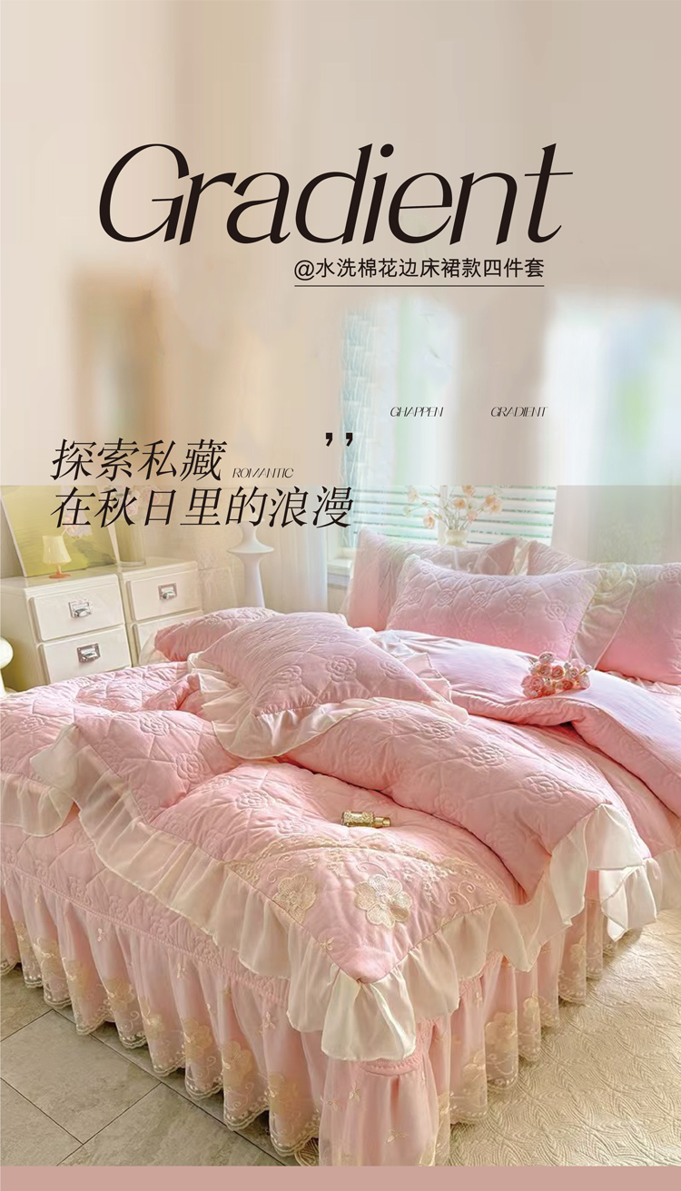 (总)漫布云 2026新款230g高克重韩版立体盘花牛奶蚕丝绒绣花四件套床裙款被套-洛丽塔系列,洛丽塔-嫩黄 ,洛丽塔-香芋紫 , 洛丽塔-珍珠粉,洛丽塔-婴儿蓝
