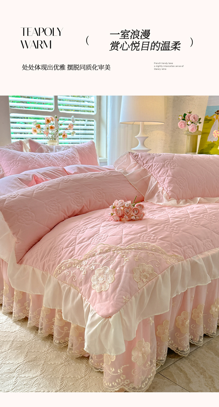 (总)漫布云 2026新款230g高克重韩版立体盘花牛奶蚕丝绒绣花四件套床裙款被套-洛丽塔系列,洛丽塔-嫩黄 ,洛丽塔-香芋紫,洛丽塔-珍珠粉, 洛丽塔-婴儿蓝