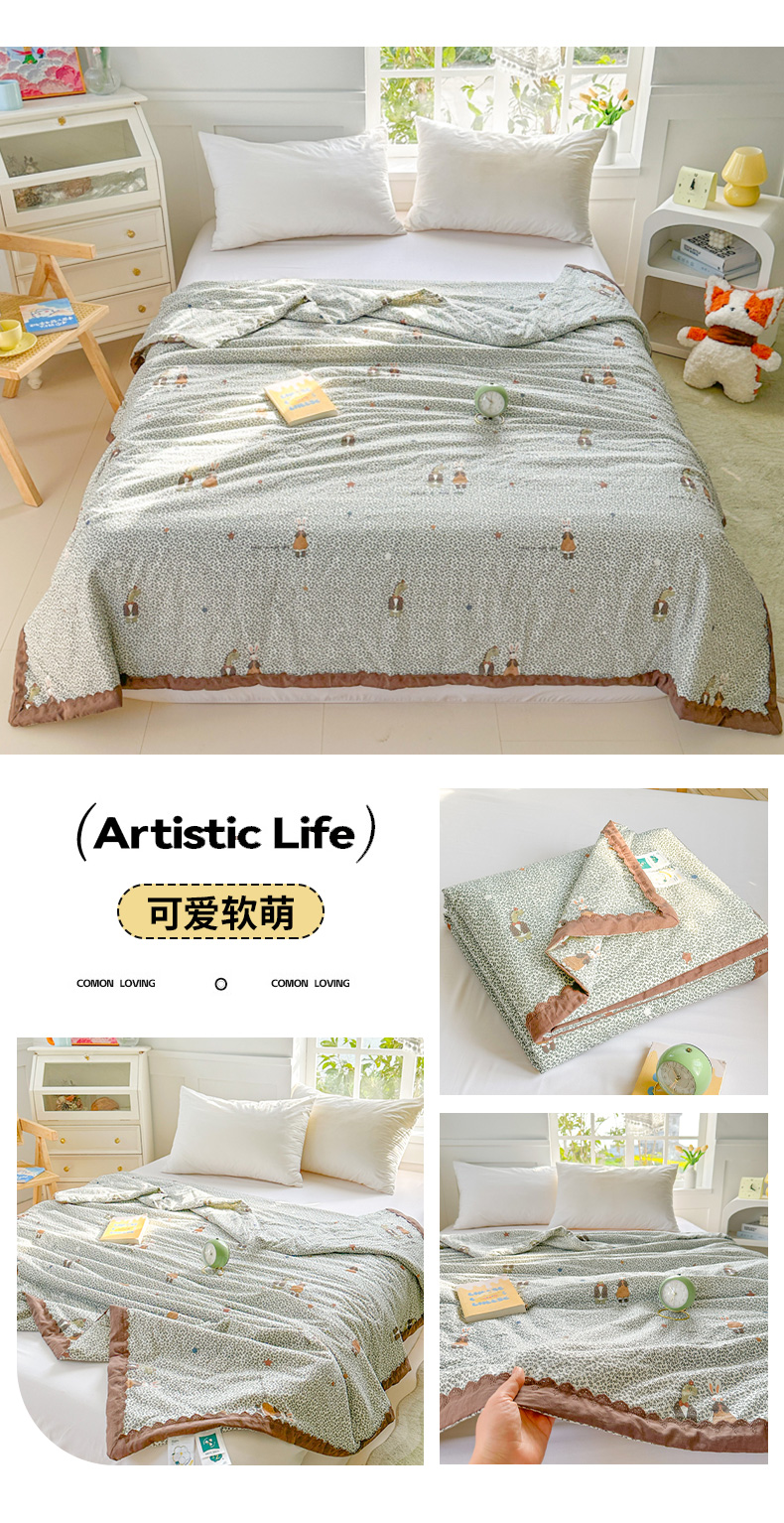 2025新款全棉60支单层纱花边夏被 可爱软萌
