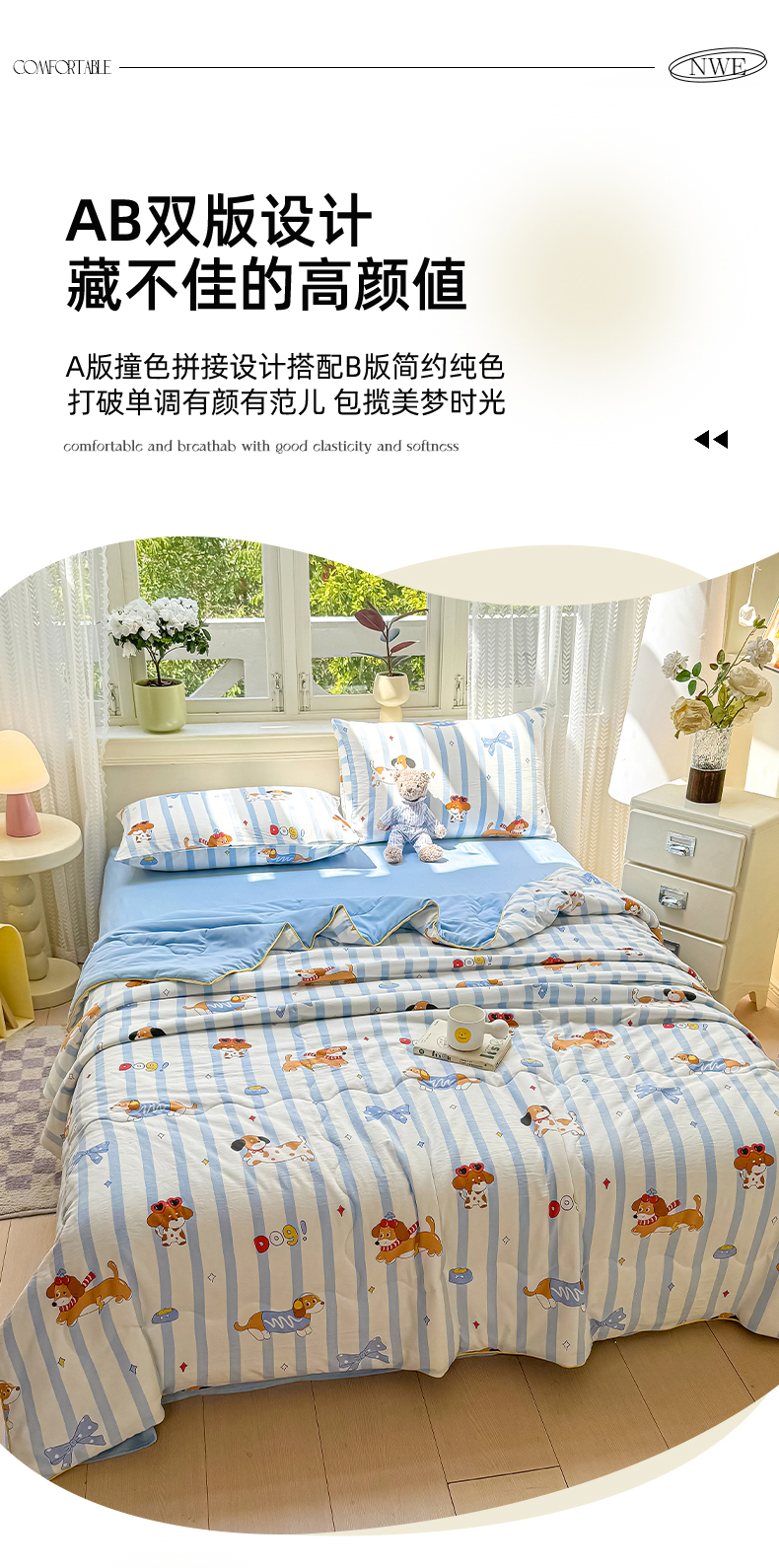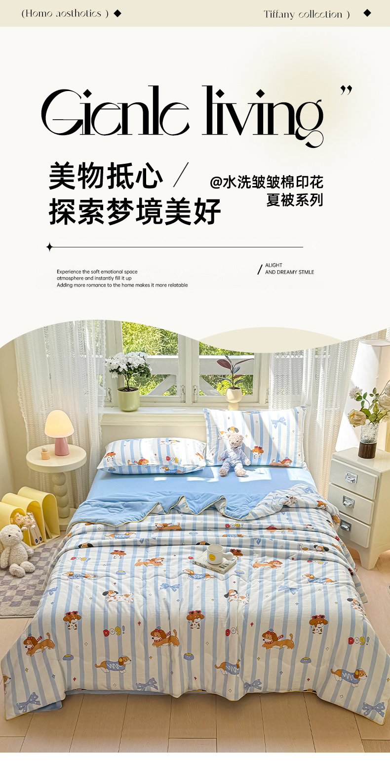 丝芙妮家居(原乐视家纺) 2025春夏新款针织棉卡通印花夏被夏凉被空调被 俏皮狗