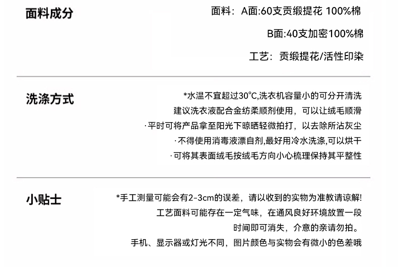 1.8m被套三件 被套180*200cm 枕套48*74cm一对 | ¥84.00 |