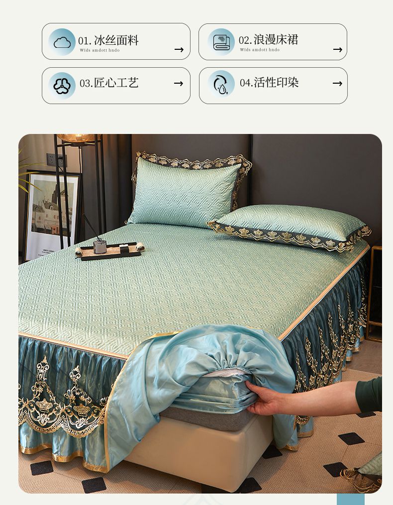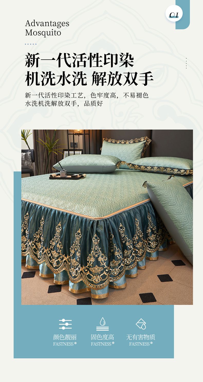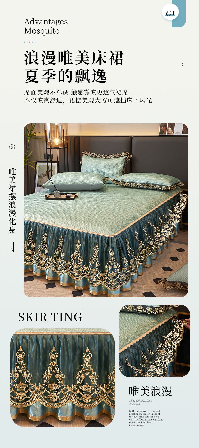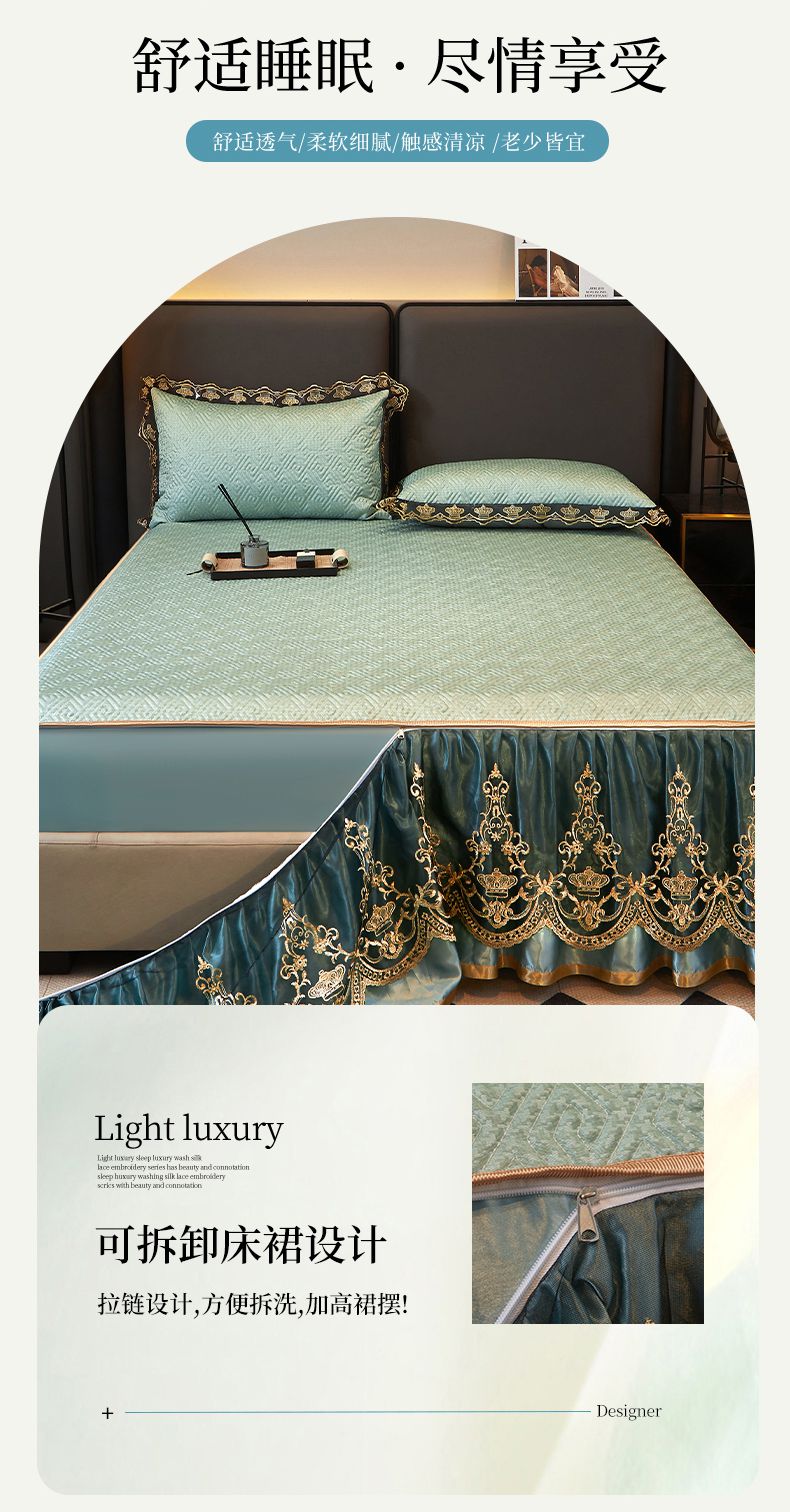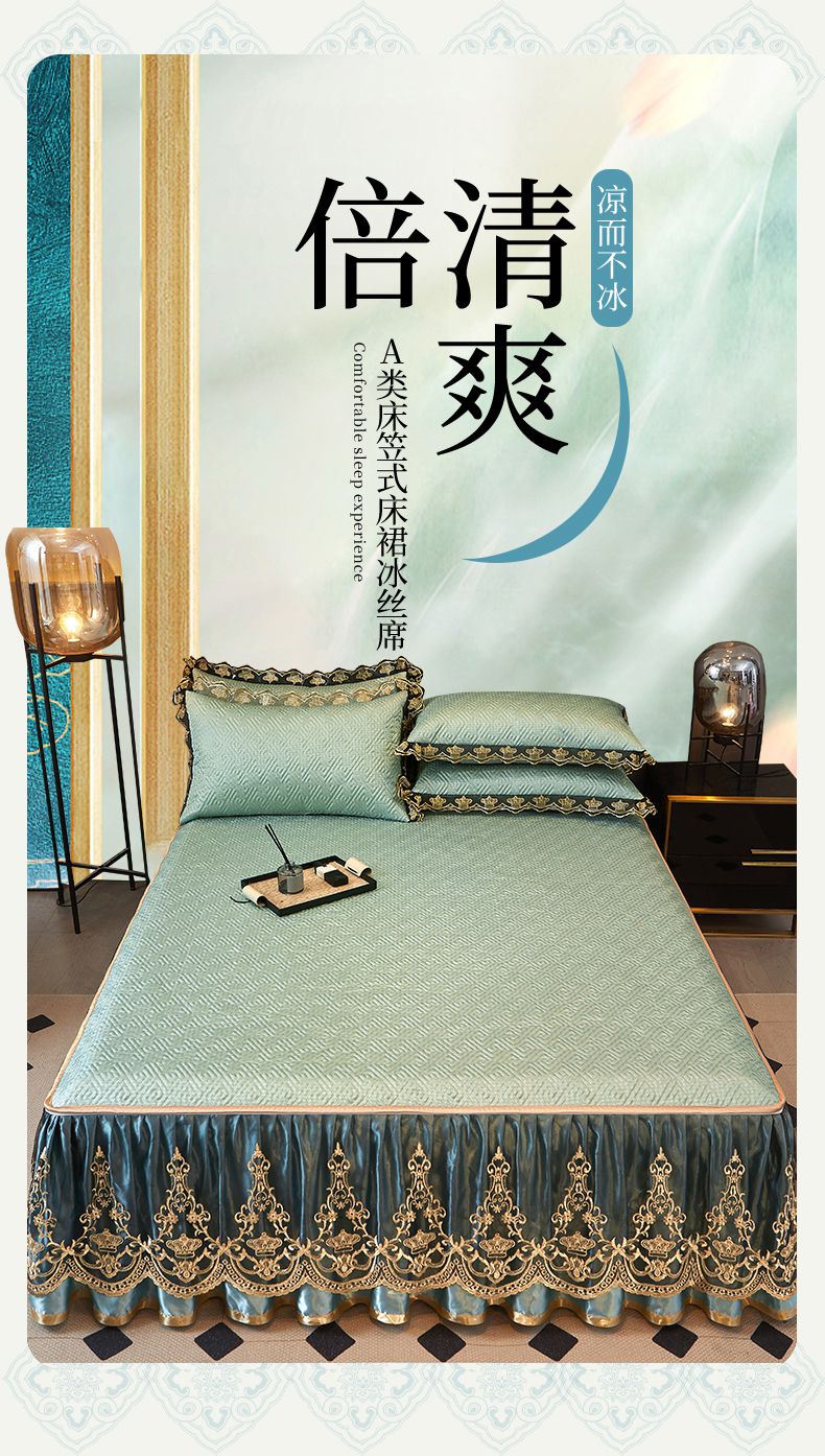 商品名称:罗艺轩 2025新款可拆卸床笠式床裙印花冰丝席 罗曼-富贵绿