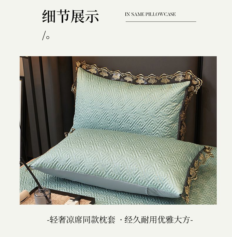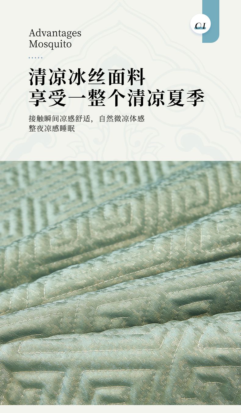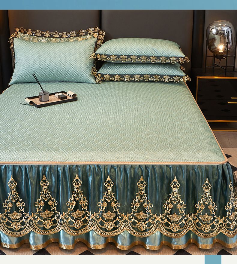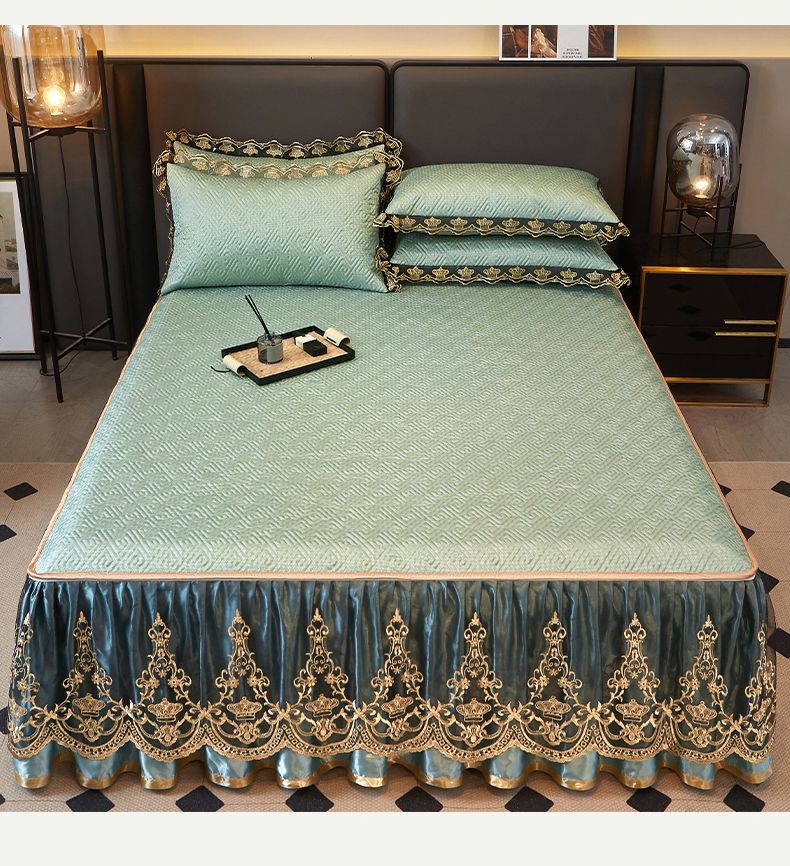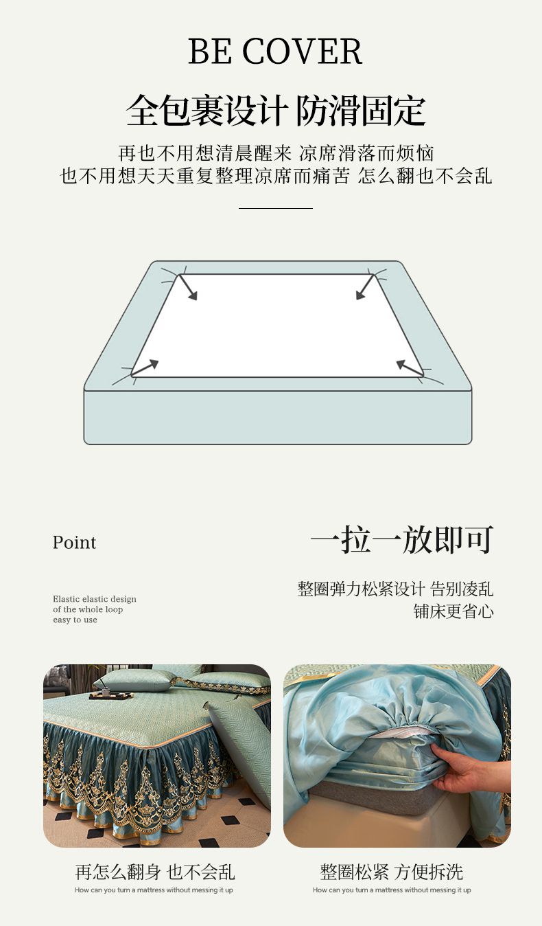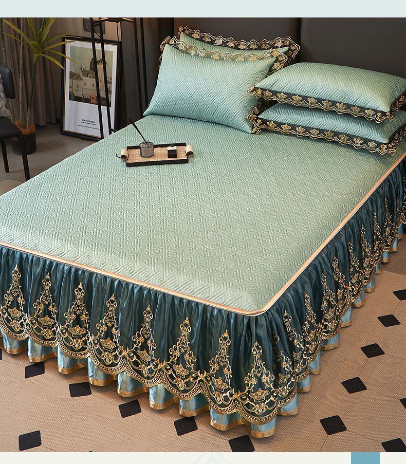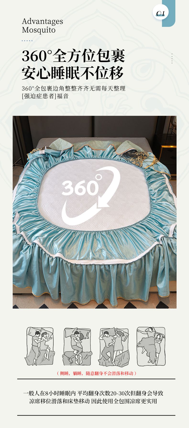 商品名称:罗艺轩 2025新款可拆卸床笠式床裙印花冰丝席 罗曼-富贵绿