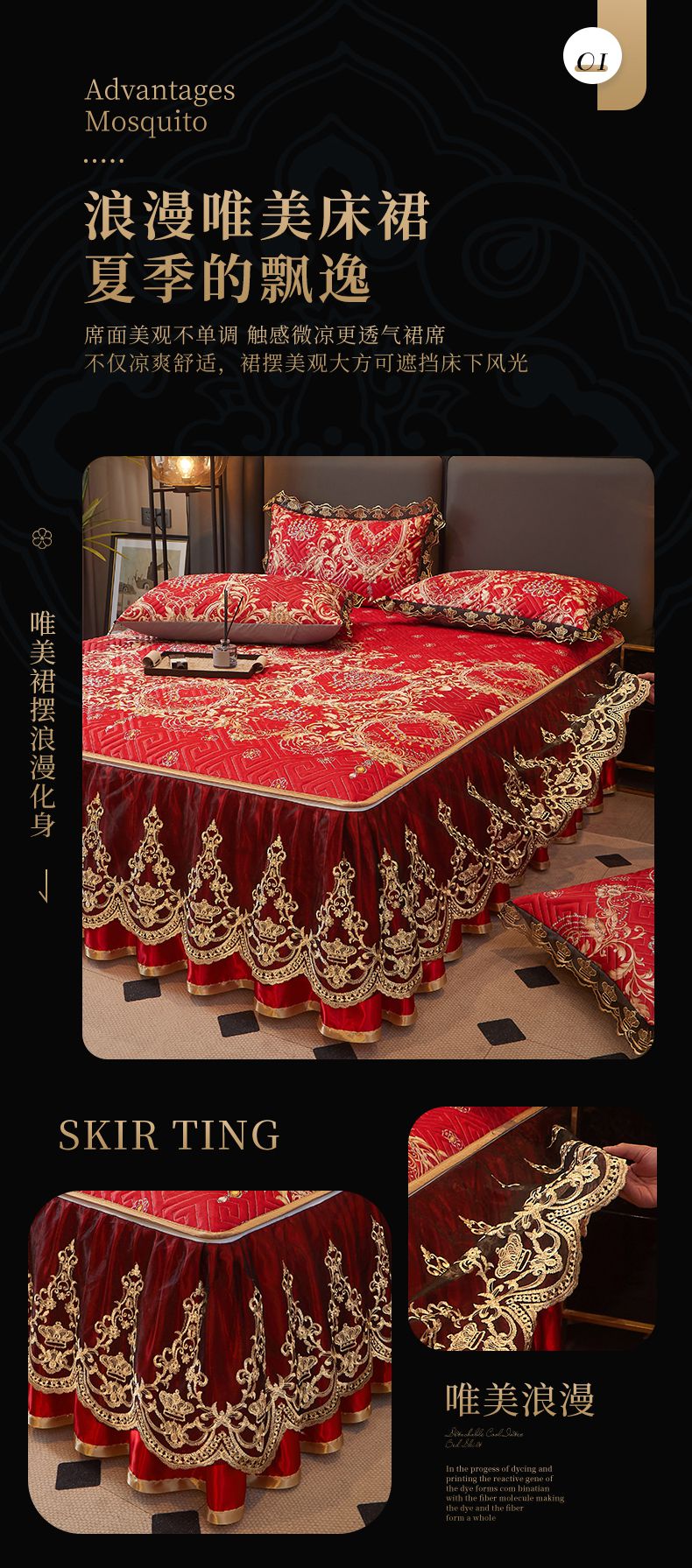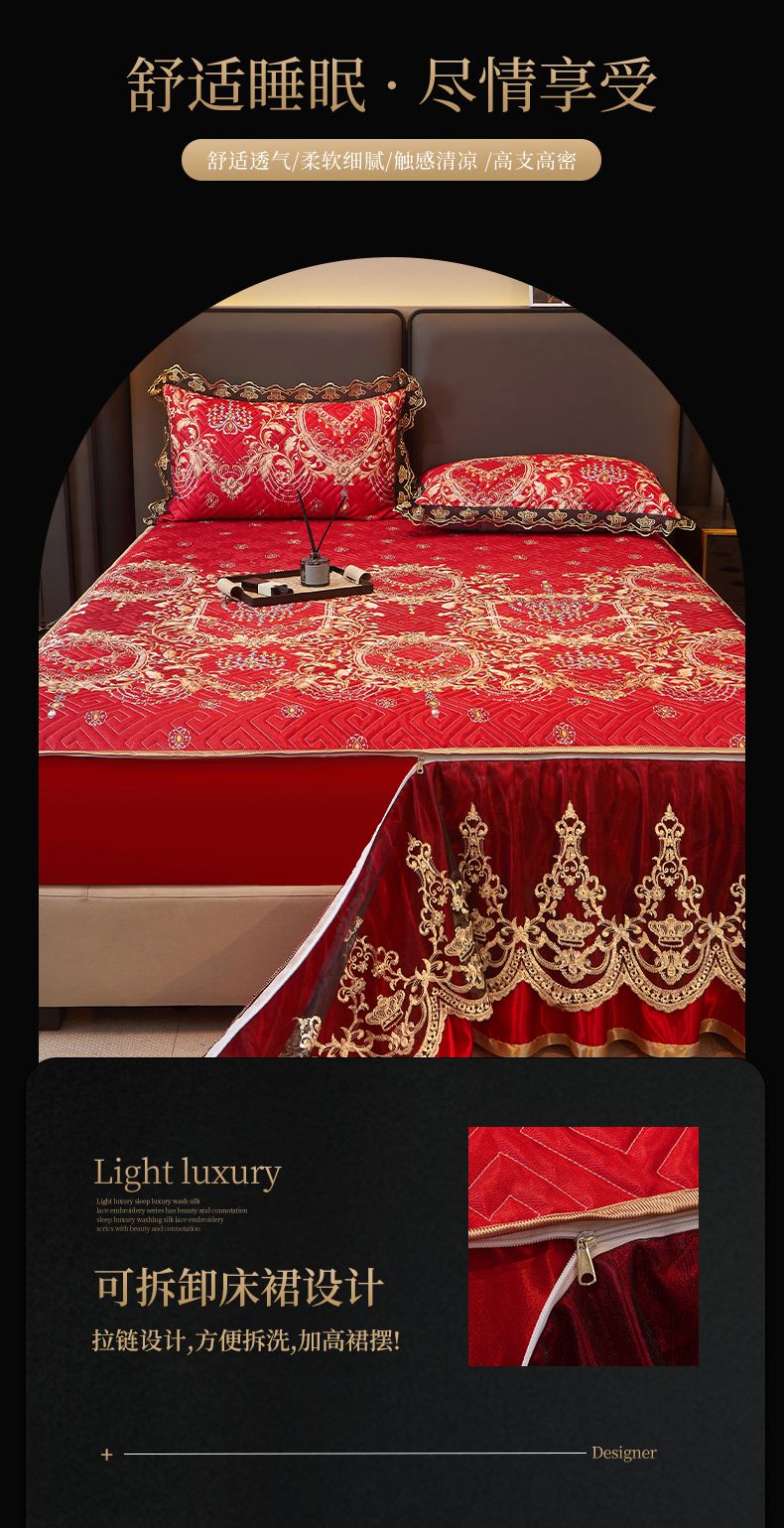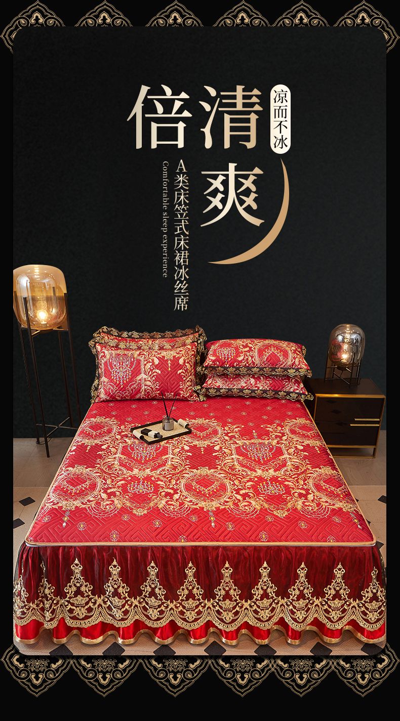 商品名称:罗艺轩 2025新款可拆卸床笠式床裙印花冰丝席 幸福恋曲