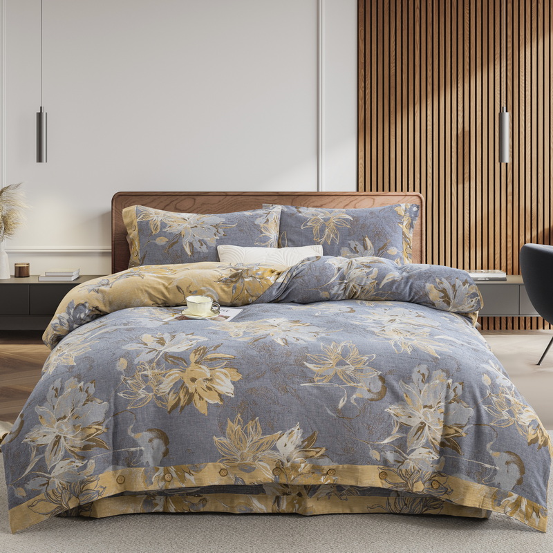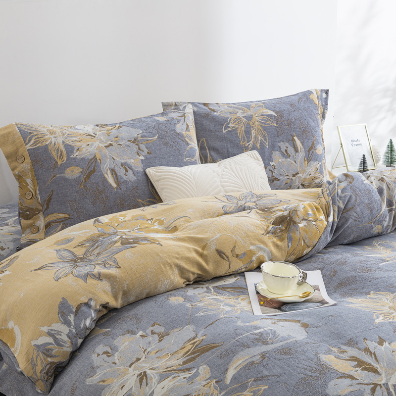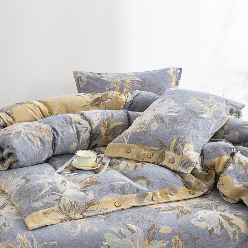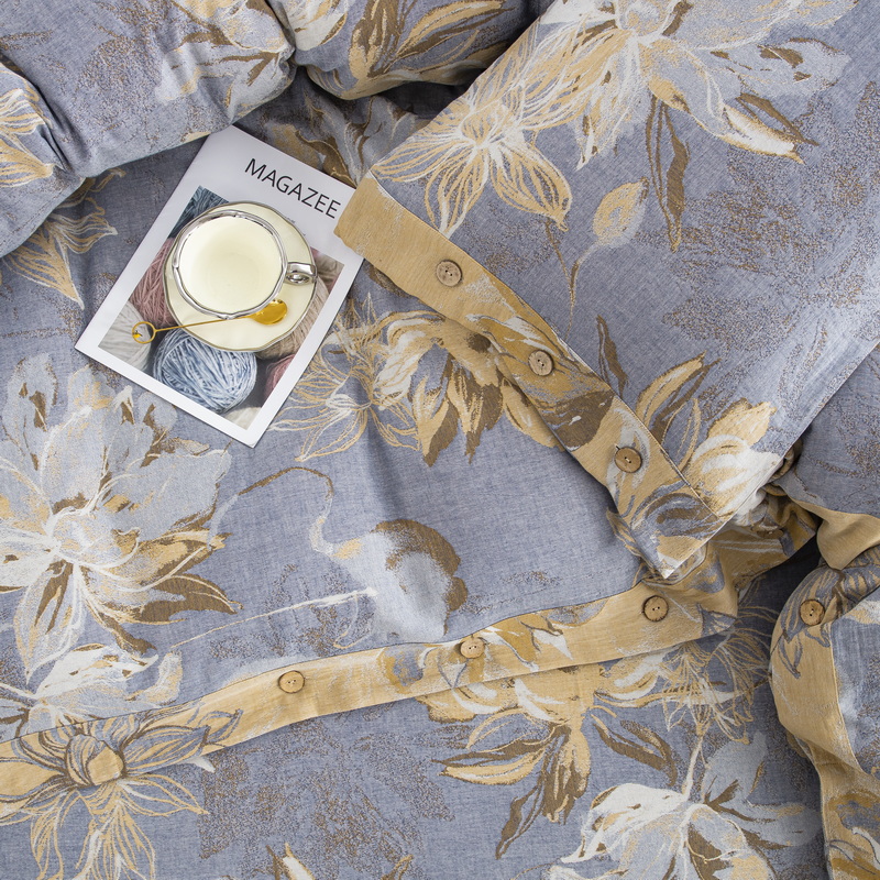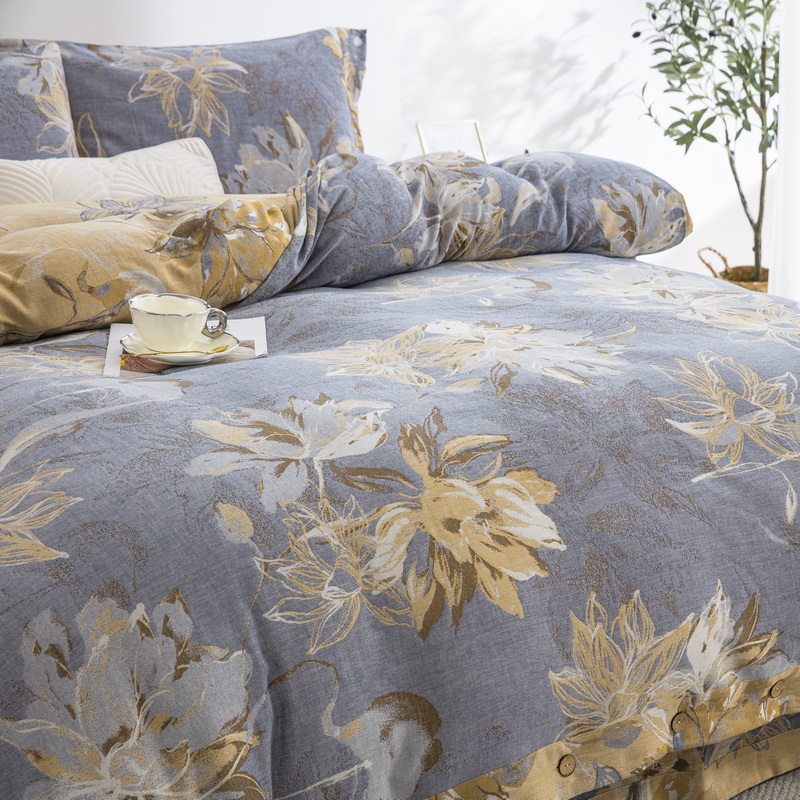 商品名称:2025新款全棉色织双层纱纽扣款四件套 韶华-灰