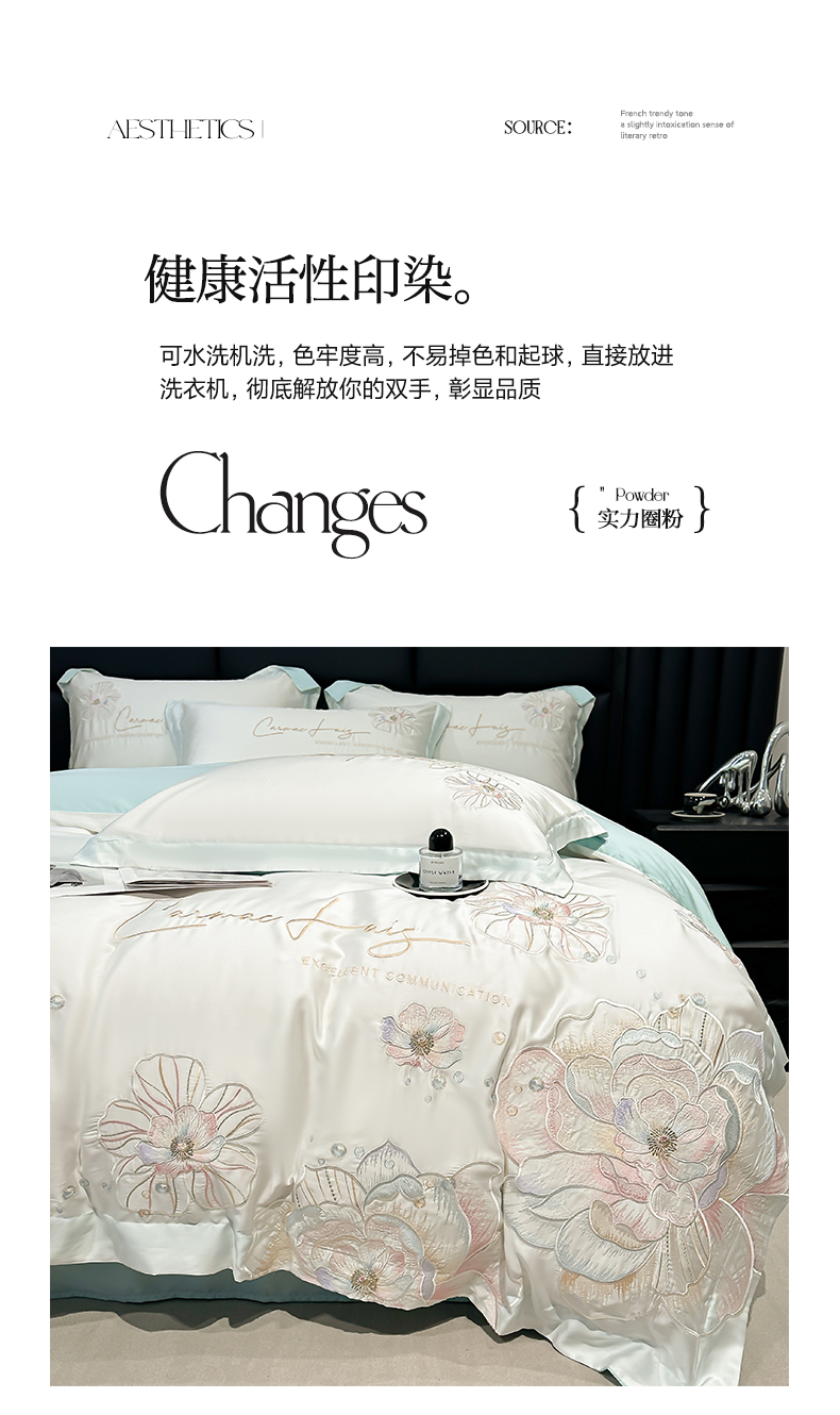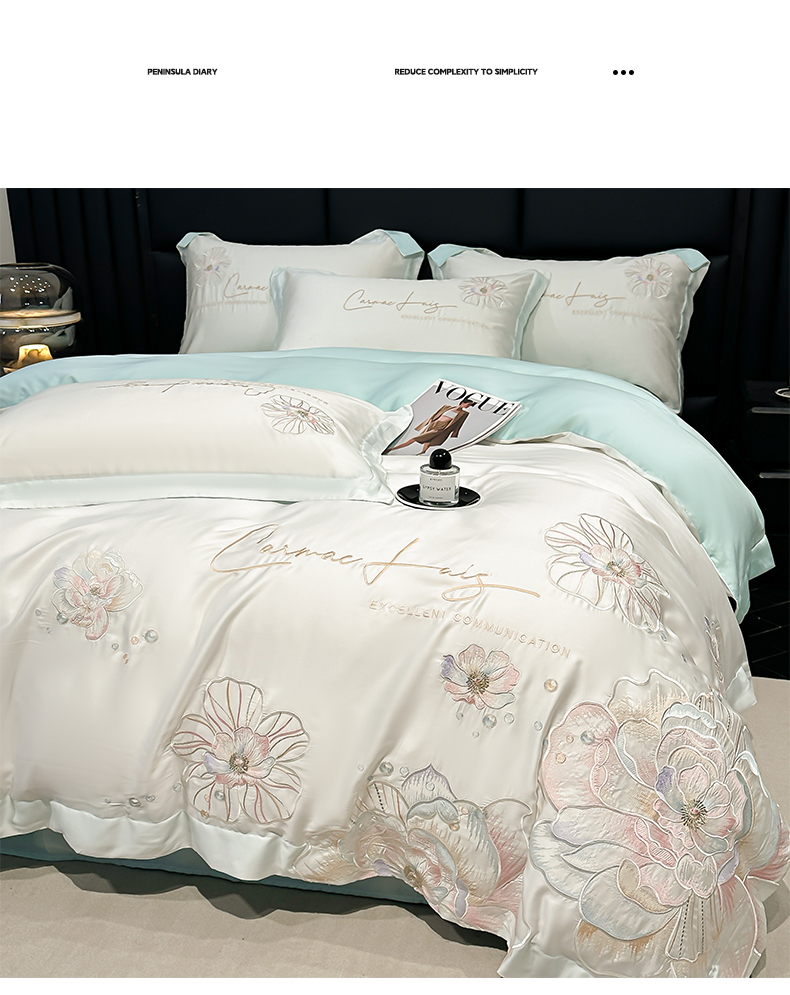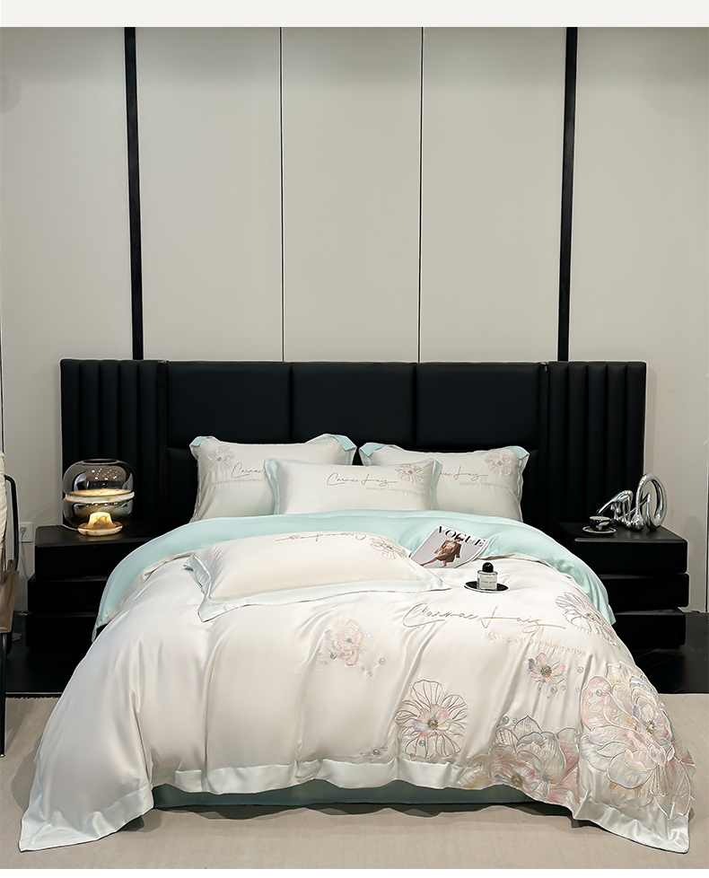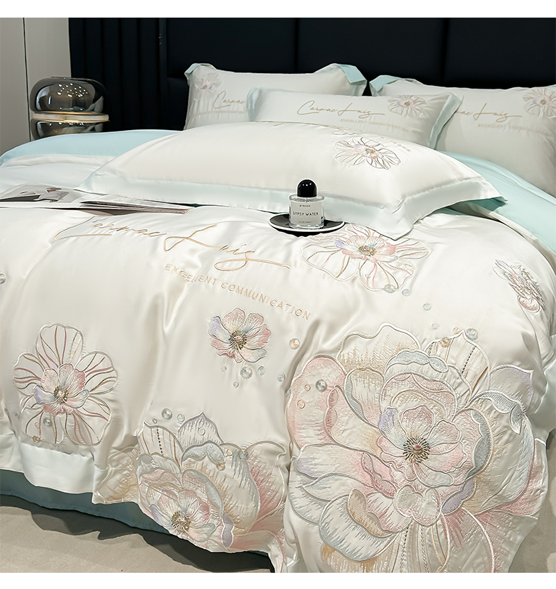 (总)欧乐蒂 2025新款欧式水洗贡缎全棉刺绣四件套-欧雅终版,宾利蓝,玉色,白色,粉色,豆沙,酒红,香槟,高级灰
