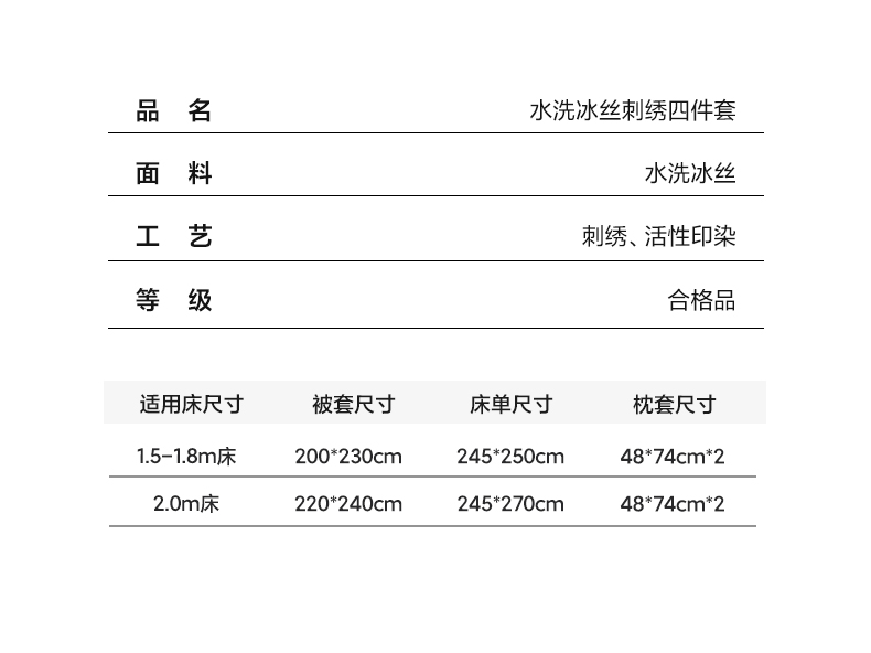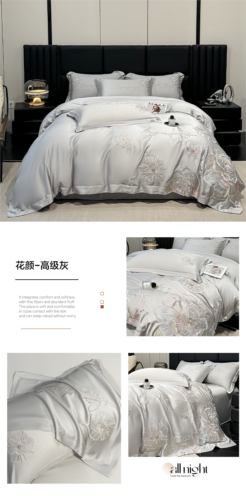 商品名称:欧乐蒂 2025新款水洗冰丝刺绣四件套-花颜 花颜-高级灰