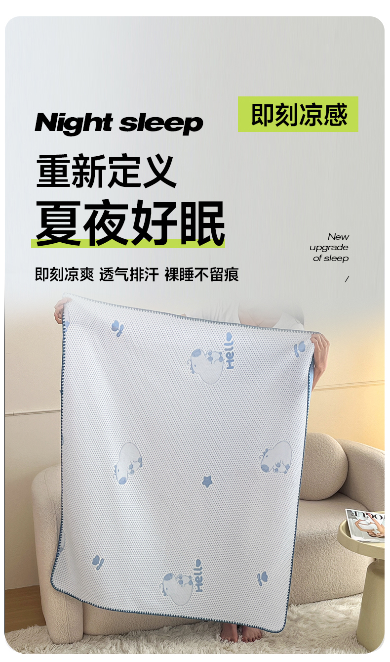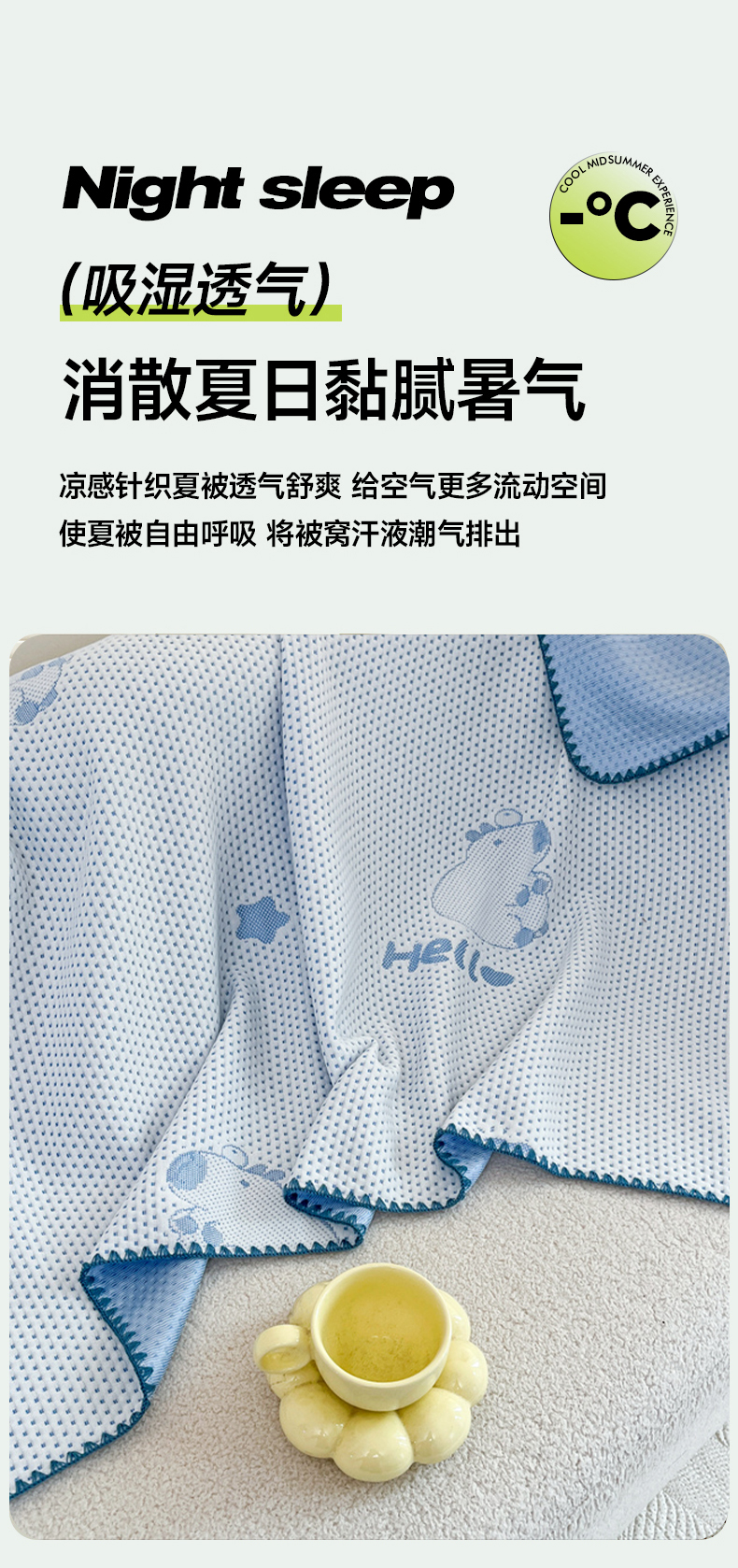商品名称:芙绣家纺 2025新款A类凉感冰豆豆多功能盖毯 蓝色