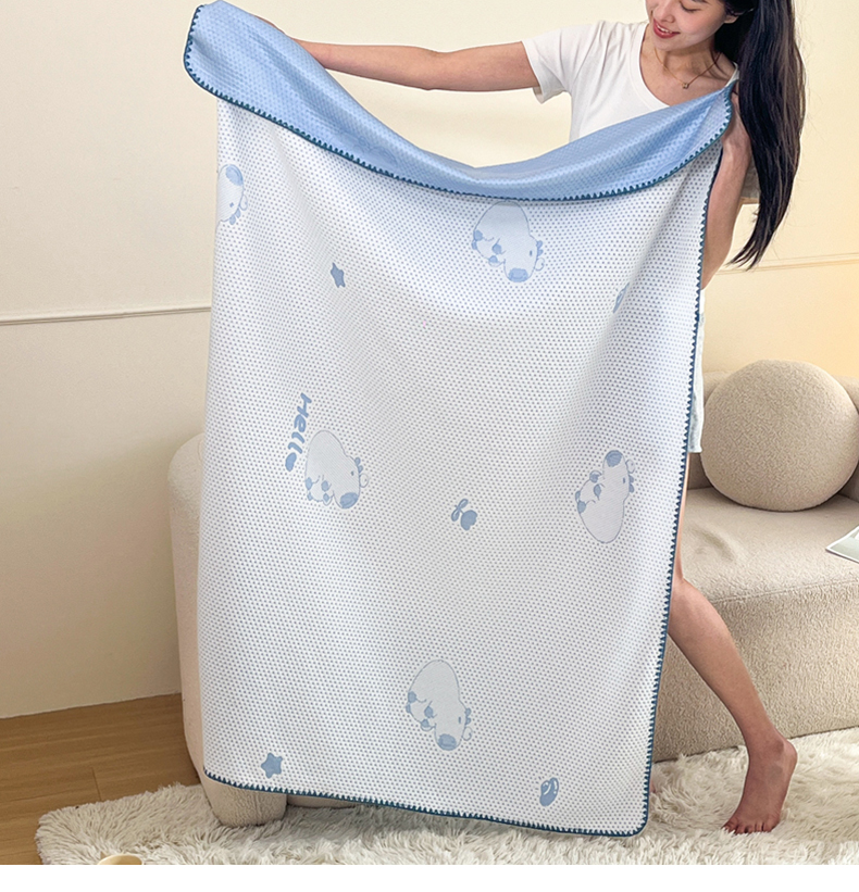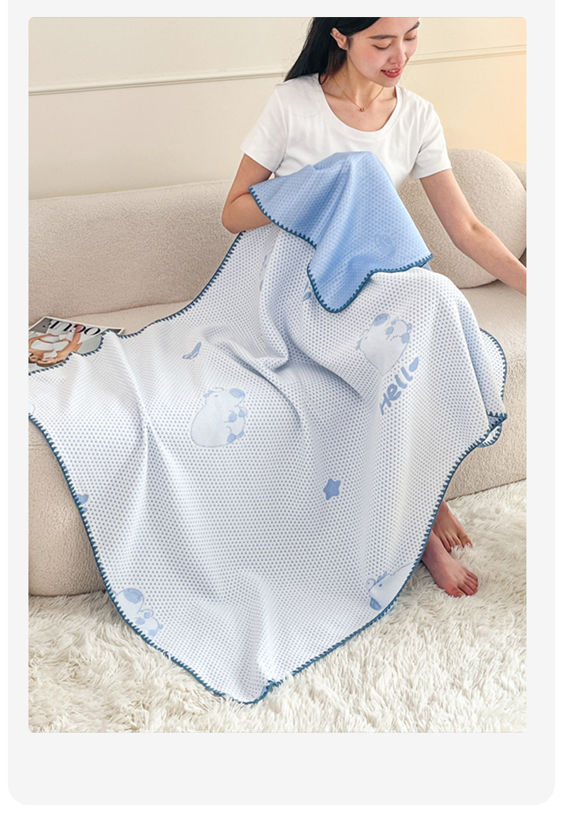 芙绣家纺 2025新款A类凉感冰豆豆多功能盖毯 蓝色
