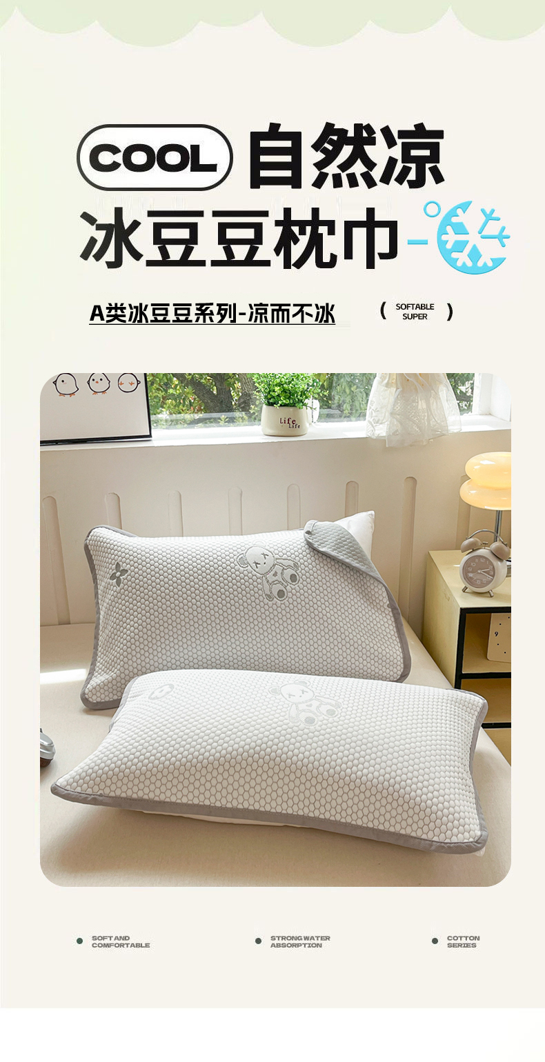 • 91家纺网 家纺一手货源 找家纺 芙绣家纺 2025新款A类凉感豆豆枕巾 小熊-灰色 52*72cm/对