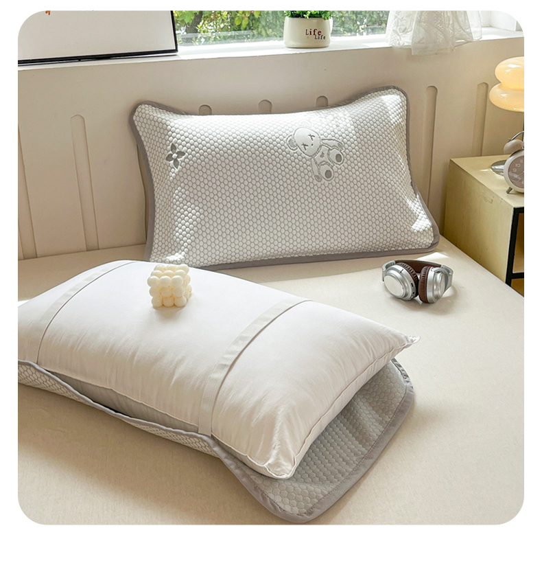 芙绣家纺 2025新款A类凉感豆豆枕巾 小熊-灰色 52*72cm/对