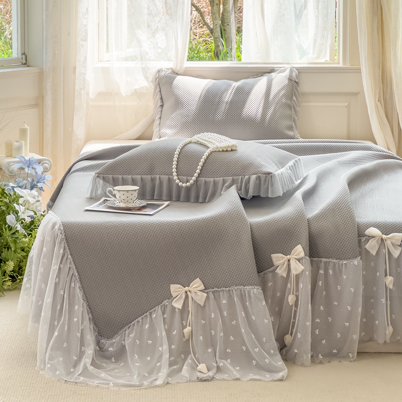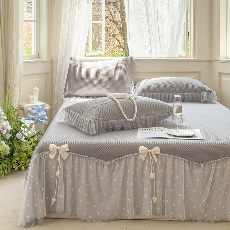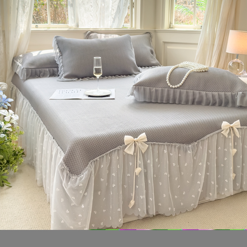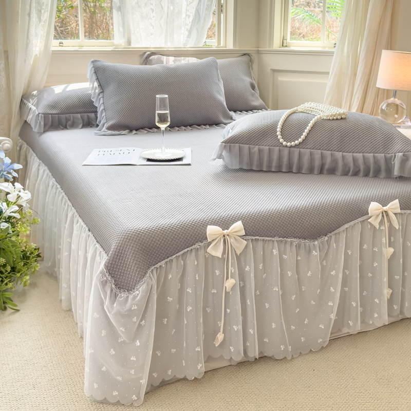 商品名称:恋尚羽家纺 2025PE高分子复合软凉席豆豆席大床裙三件套 灰色