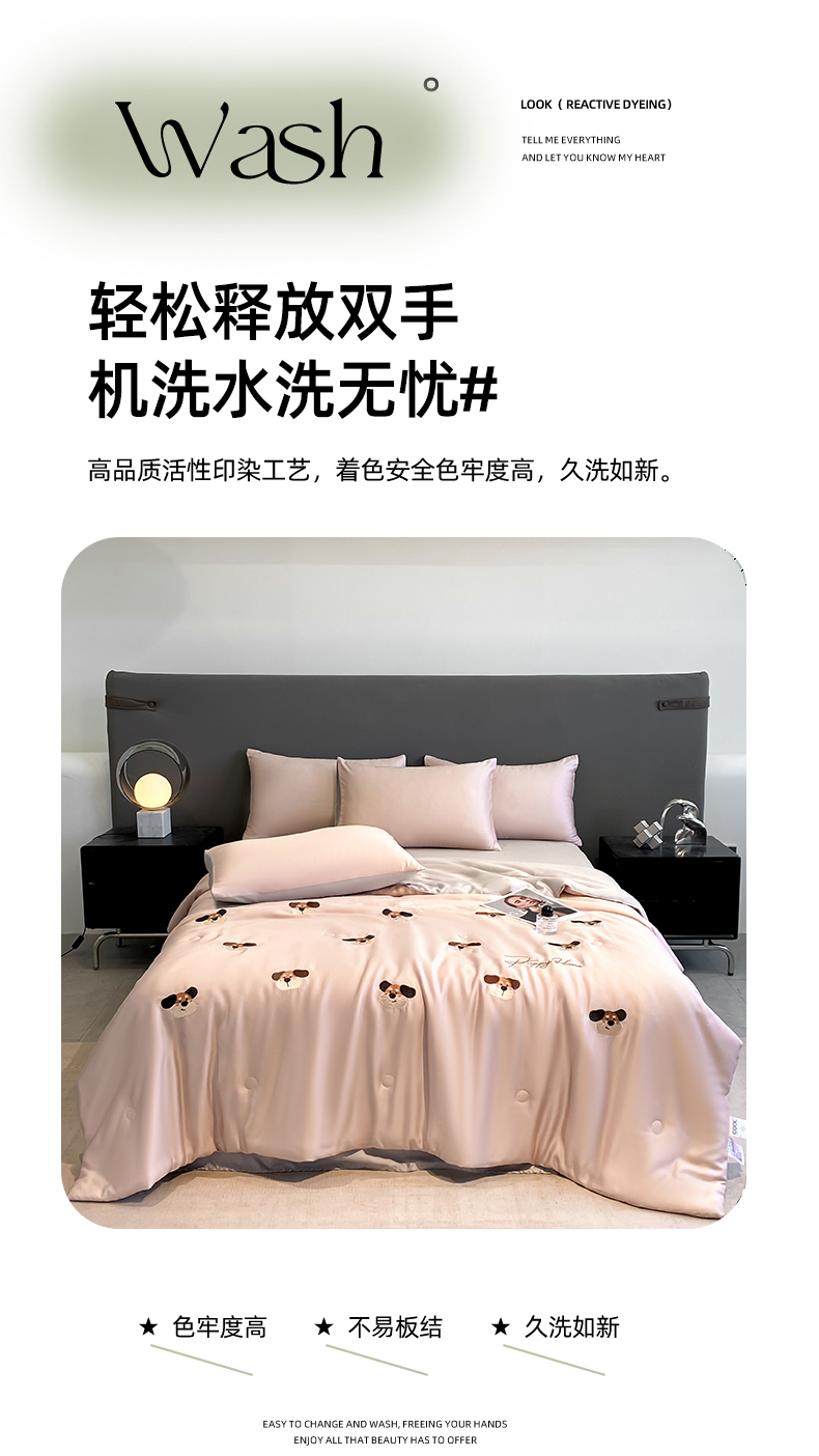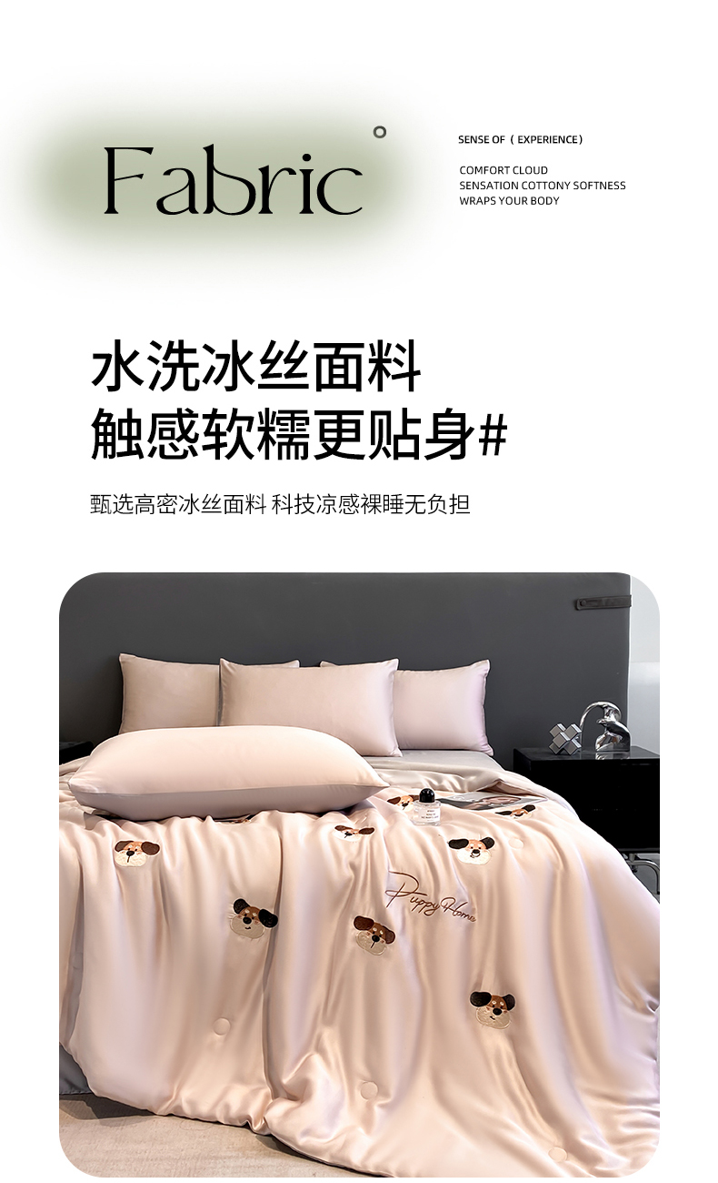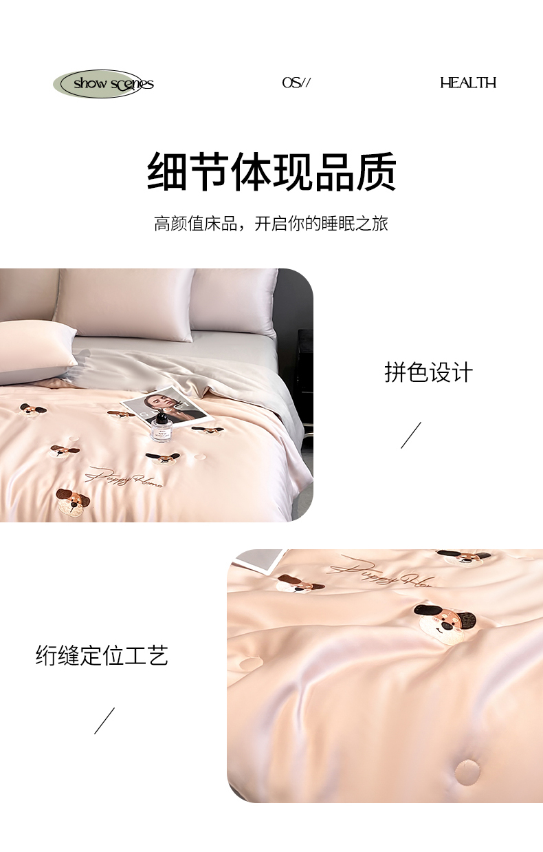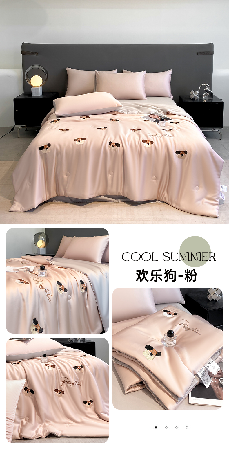 当前位置: 91家纺网 > 商品网购 > 床品套件 > 四件套 > 夏被四件套 > 丝芙妮家居(原乐视家纺) 2025春夏新款水洗冰丝夏被夏凉被空调被四件套-满绣系列 欢乐狗-粉