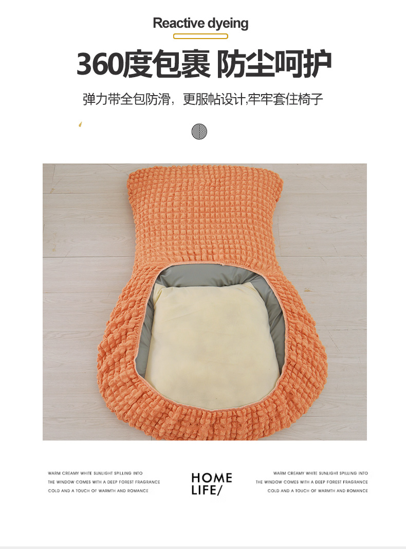 (总)启博家纺 2025新款泡泡纱南瓜椅套,橙色,橄榄绿,灰蓝,咖色,米白,桃粉