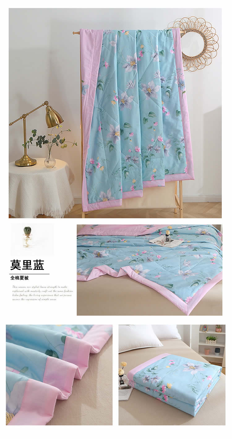 商品名称:贝兰仙奴 2025春夏新款全棉印花夏被夏凉被空调被 莫里蓝