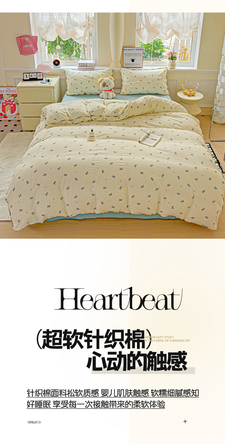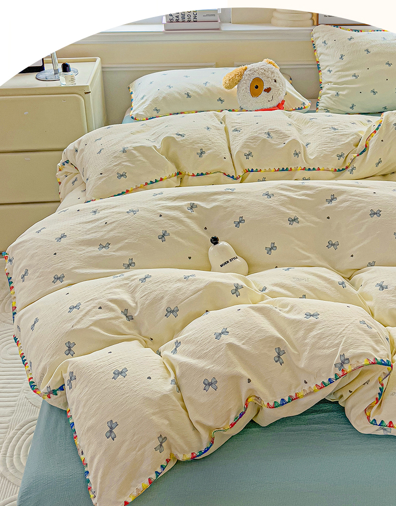 当前位置: 91家纺网 > 商品网购 > 床品套件 > 四件套 > 双层纱四件套 > Mata蔓塔家 2025春夏新款云感针织双层纱彩色贝壳边四件套 葡萄七分甜