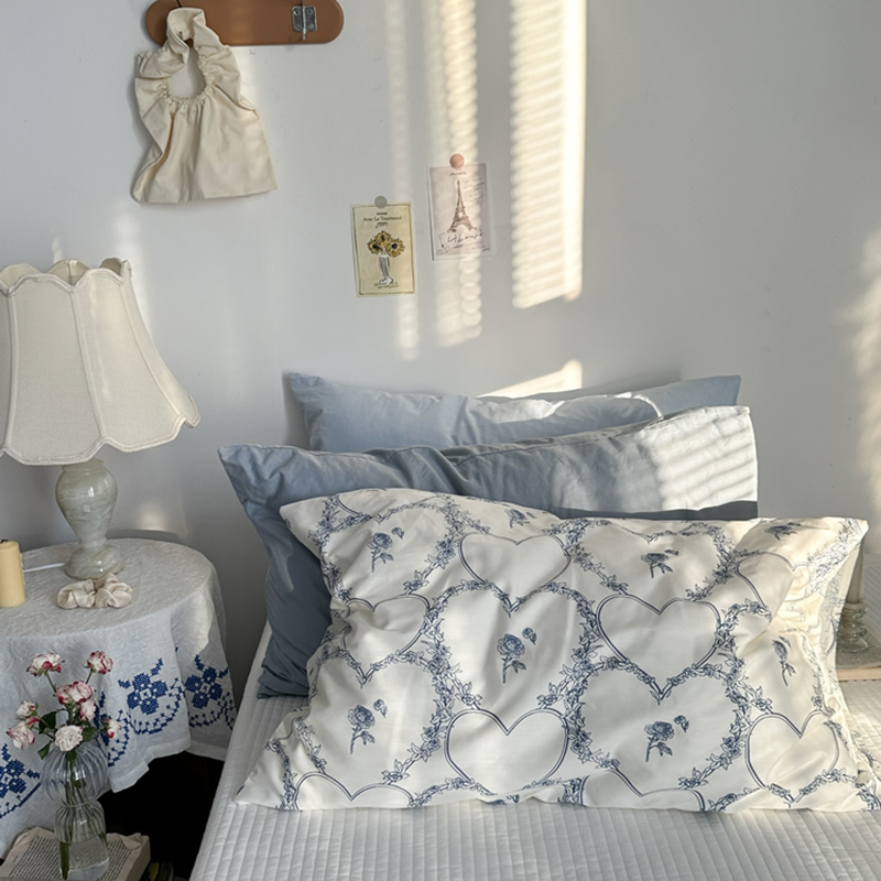 柚可家居 2024新款纯棉40支色织纯色印花单枕套2 单宁蓝