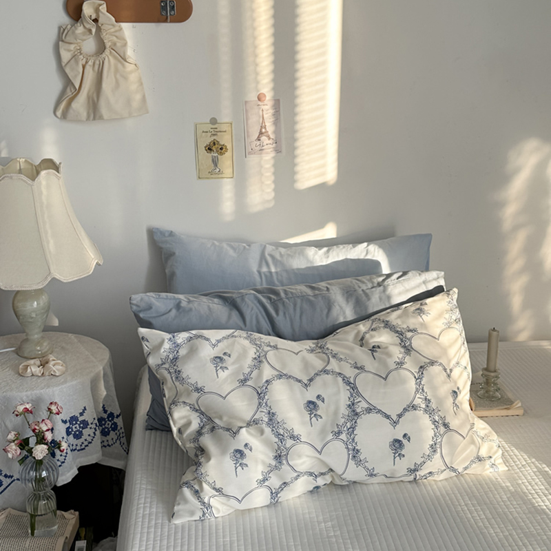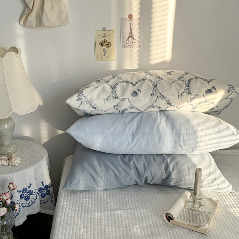 商品名称:柚可家居 2024新款纯棉40支色织纯色印花单枕套2 单宁蓝