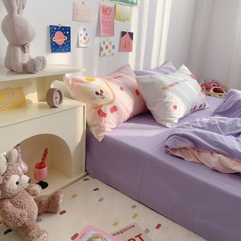 商品名称:柚可家居 2024新款定版枕套水洗棉四件套 草莓芝士 粉紫+紫