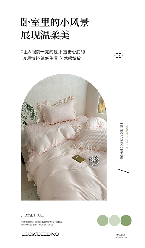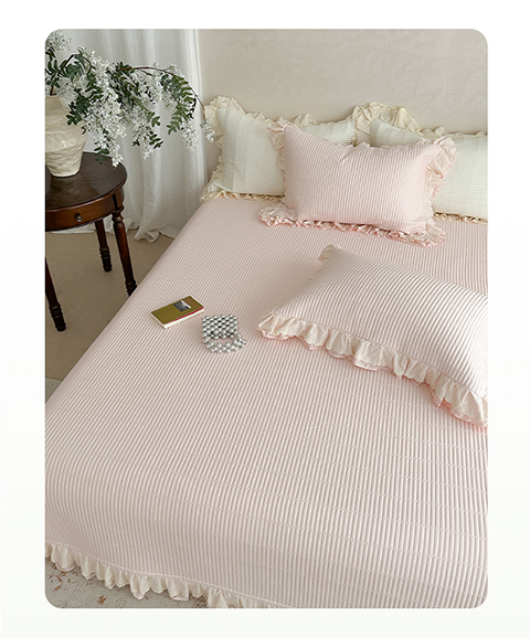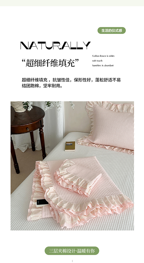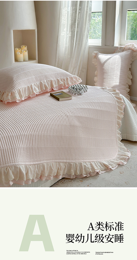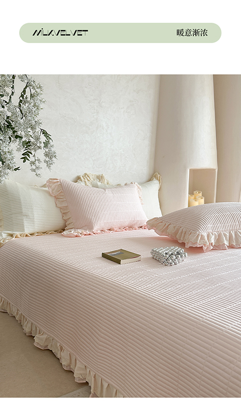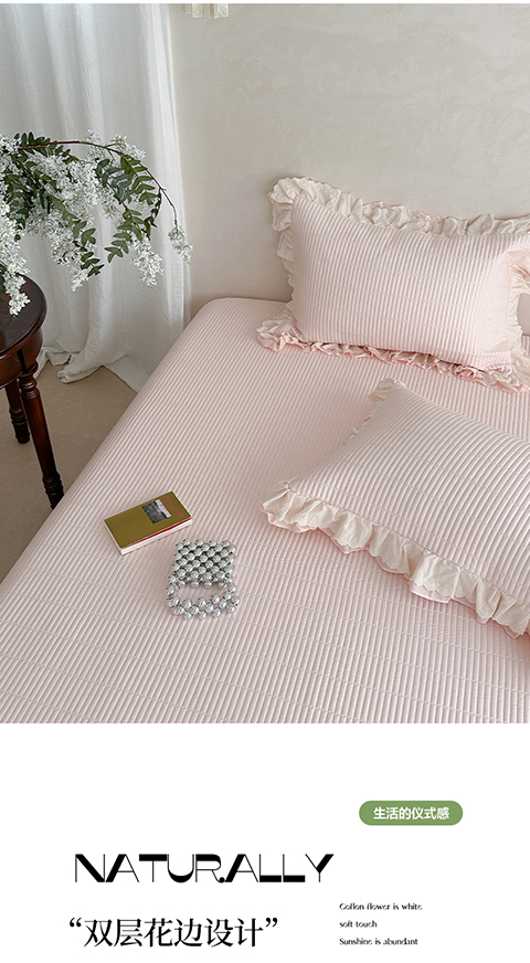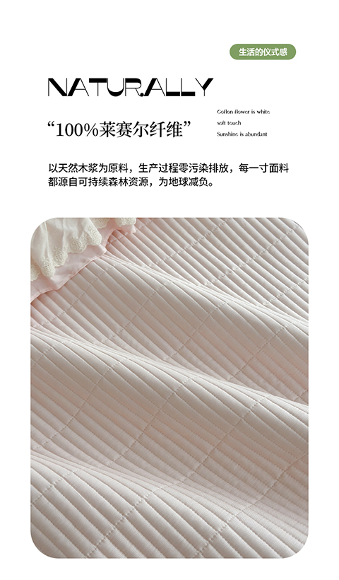 商品名称:琳可家居 2025新款轻法系列双层花边100%莱赛尔纤维床盖三件套可搭配同款被套(提供买家秀) 樱花粉