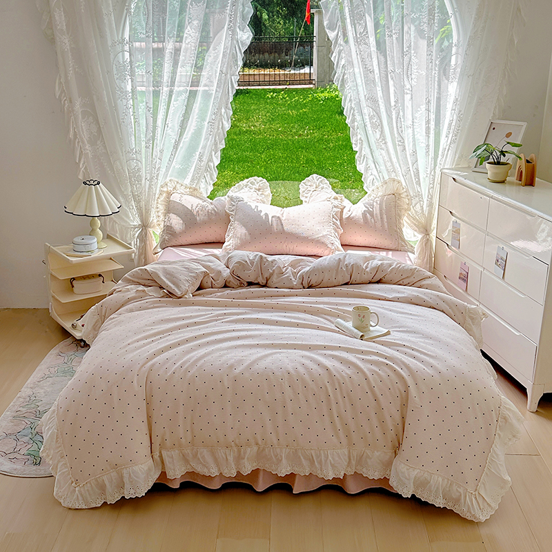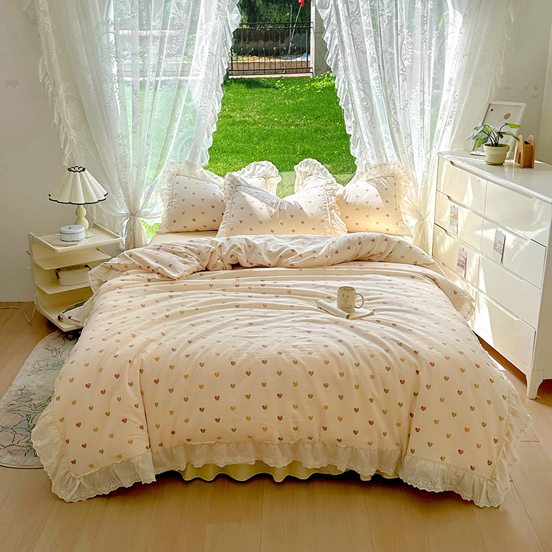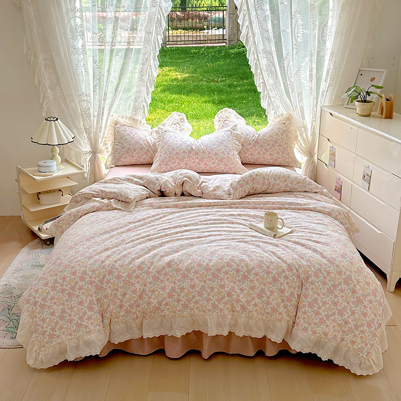 (总)一比一 2026新款云感皱皱双层纱四件套-全棉花边款【控价99元销售】,半夏绿,百福蓝,薄荷微凉,春风里,春晓,豆蔻,蝴蝶梦,可颂,兰黛,山野栀子,素颜,太妃糖,心动,遇见,芝士奶酪,紫爱心,紫苏,花园兔,蜡笔画,小黑兔,白茶-绿,初恋,莱茵河畔,桃花诺