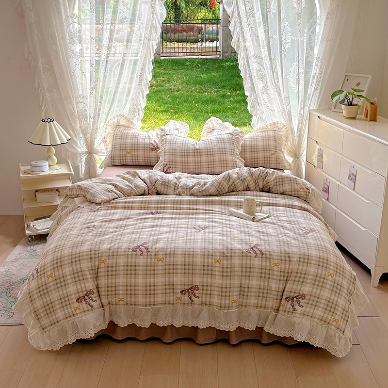 (总)一比一家纺 2025新款古法水洗棉全棉花边蝴蝶结四件套,组合图仅供展示,艾薇,花开满园,静初,可可庄园,绿野仙踪,觅秋,暮归十里,雅集,雅漫花语,悠然雅居,鸢尾兰,紫郁