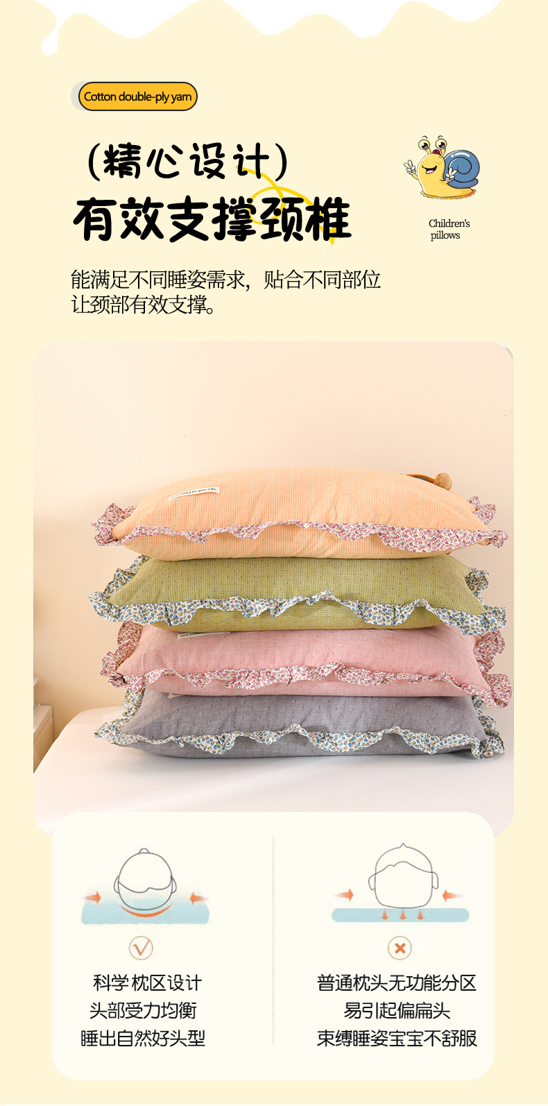 商品名称:金牛枕芯 2025春夏新款贴布绣樱桃荞麦枕全棉水洗棉小提花儿童学生枕头枕芯 樱桃丸子-橙色