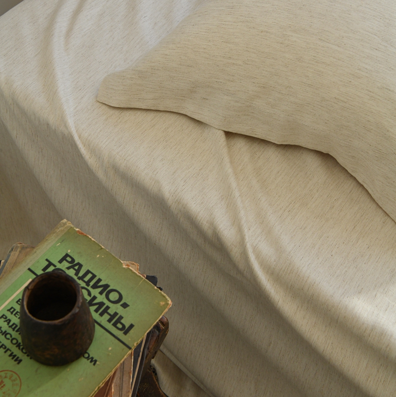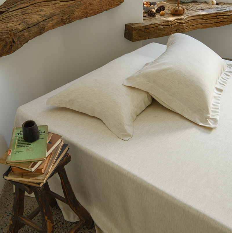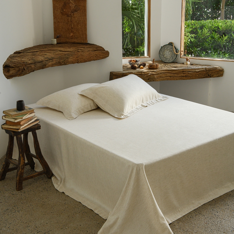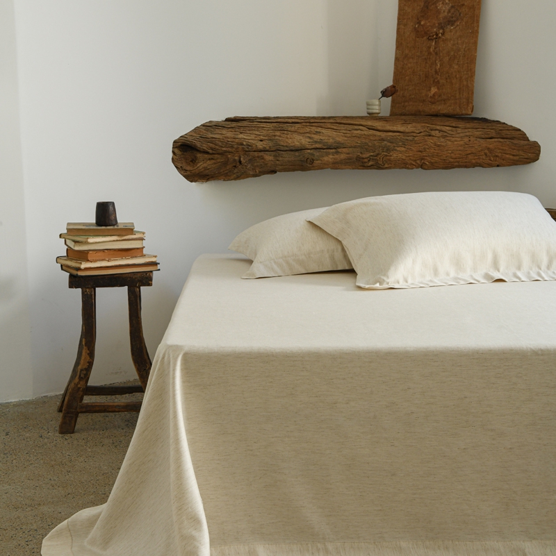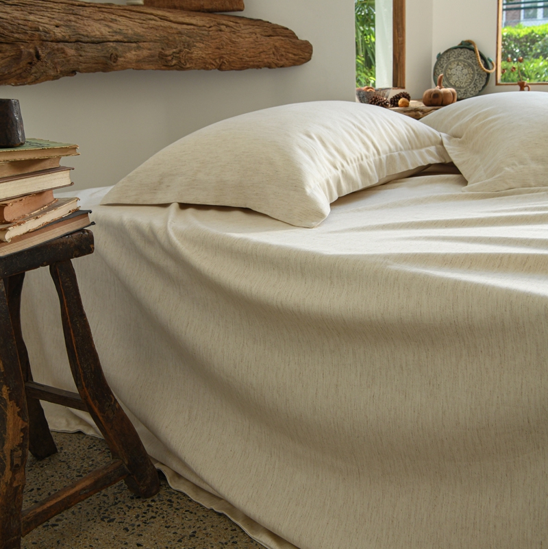 (总)简家居 2025新款亲肤舒适棉麻床盖三件套,棉麻提花