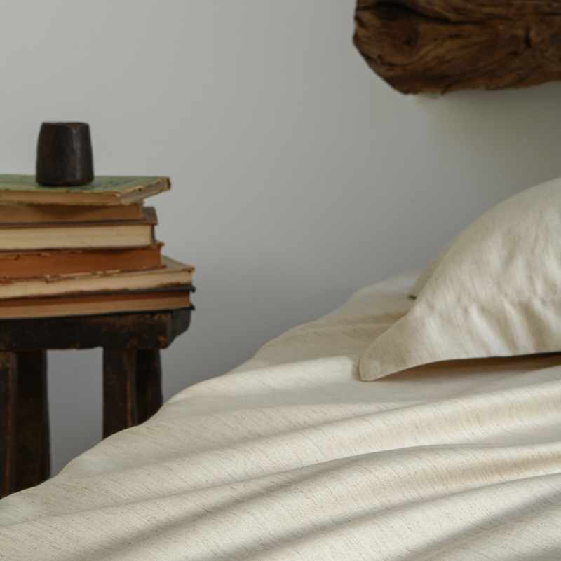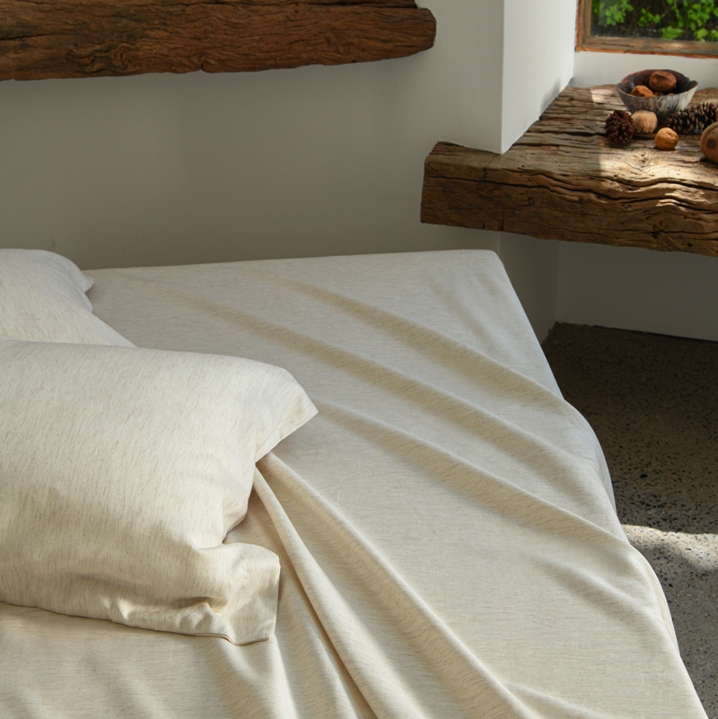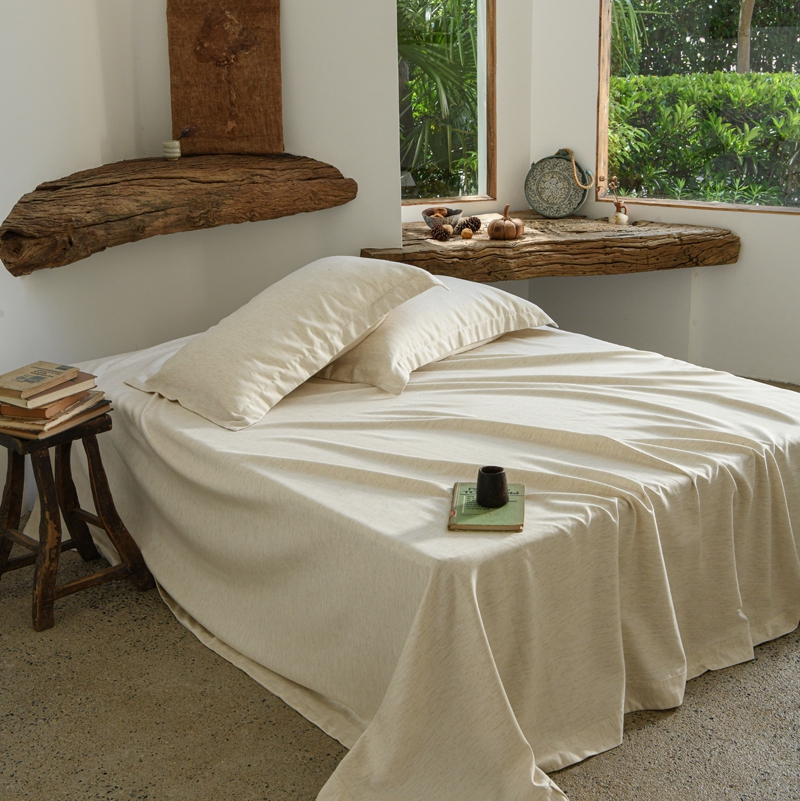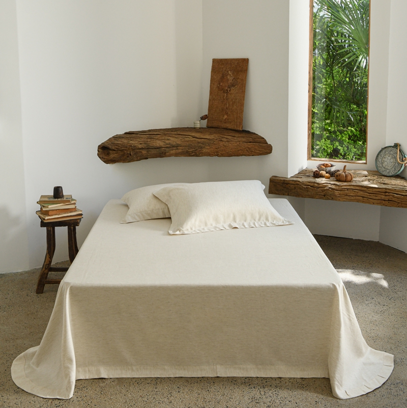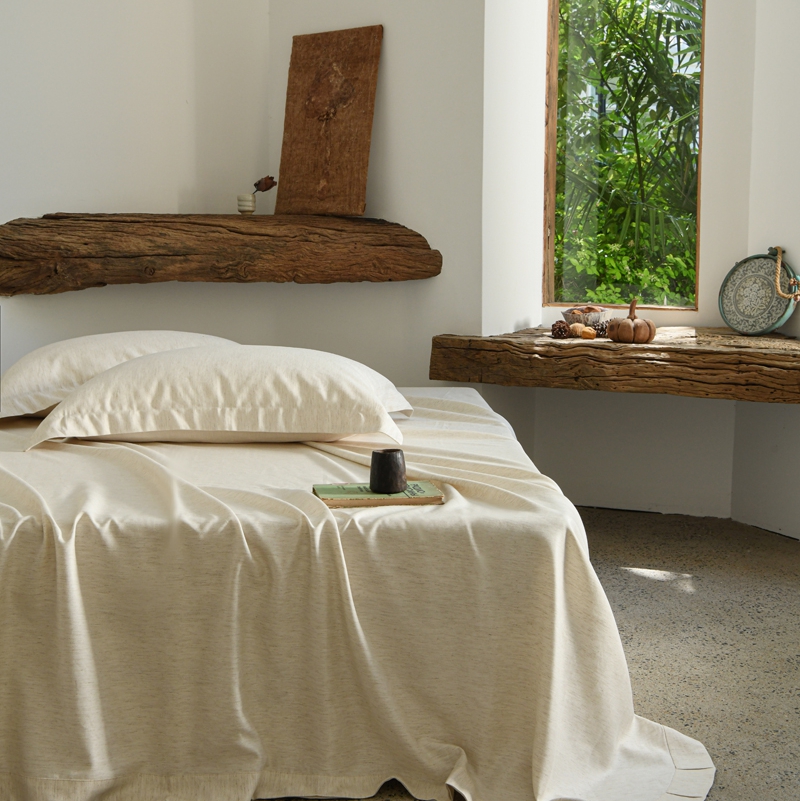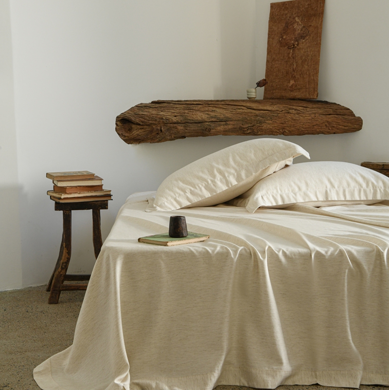 (总)简家居 2025新款亲肤舒适棉麻床盖三件套,棉麻提花