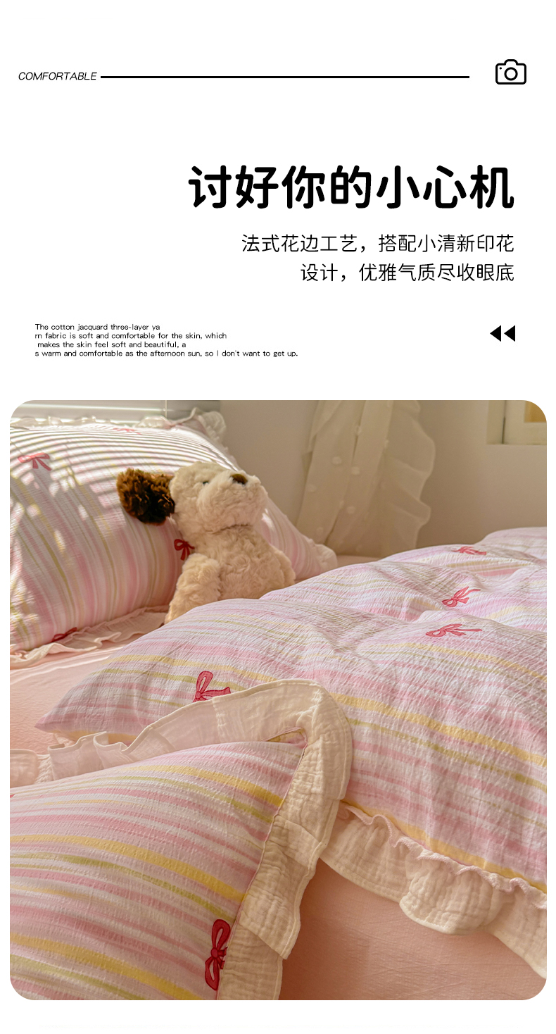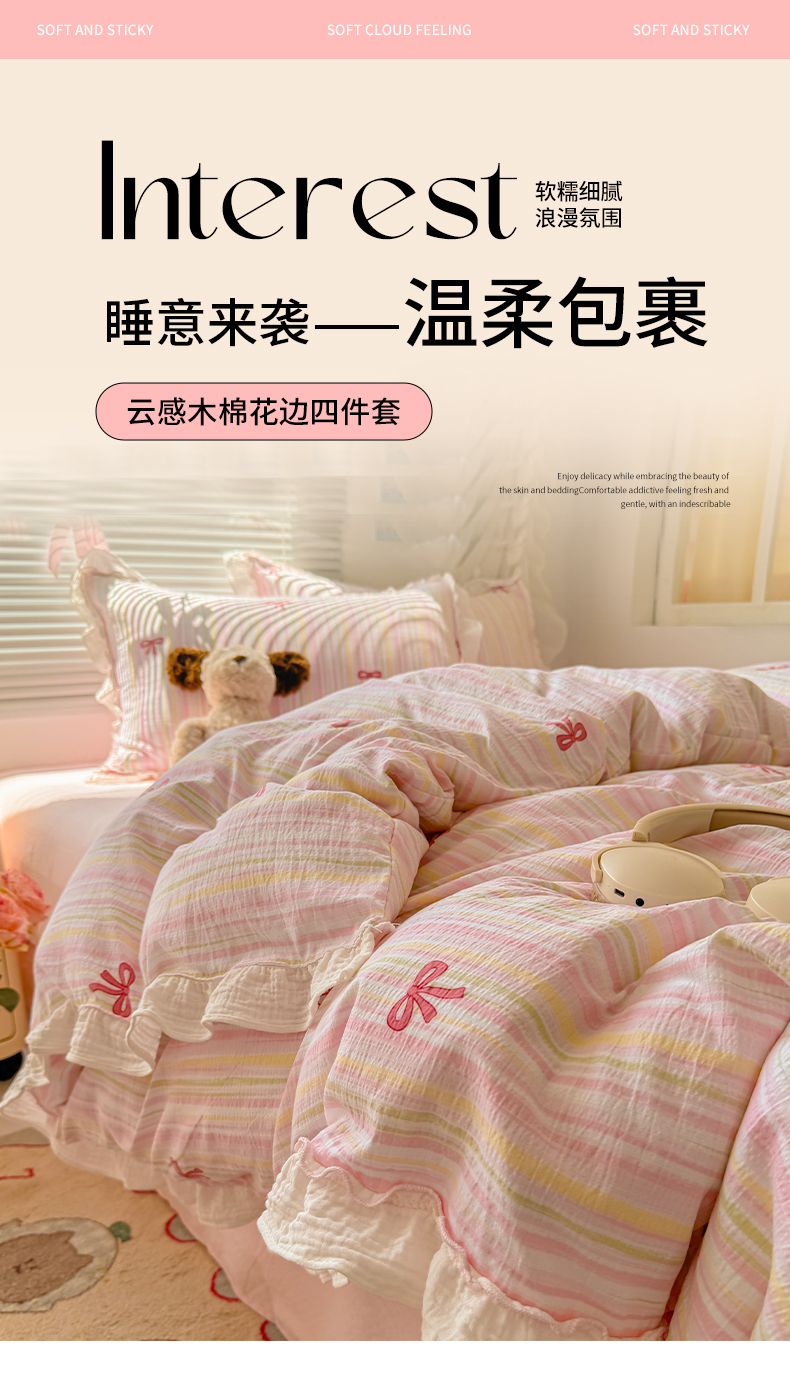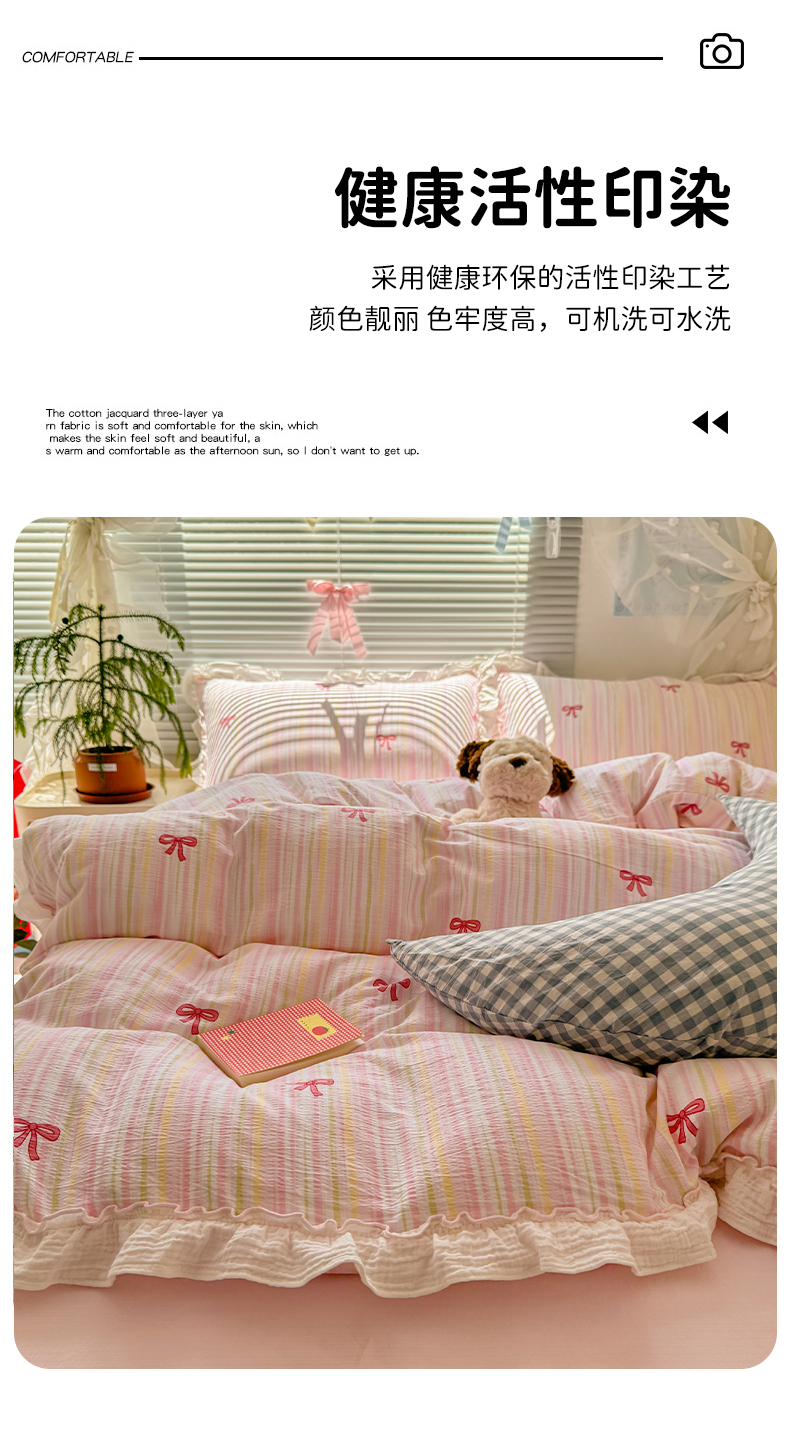 当前位置: 91家纺网 > 商品网购 > 床品套件 > 四件套 > 提花四件套 > 繁花家居 2025新款云感棉提花学生季超温柔小花边四件套 一路生花