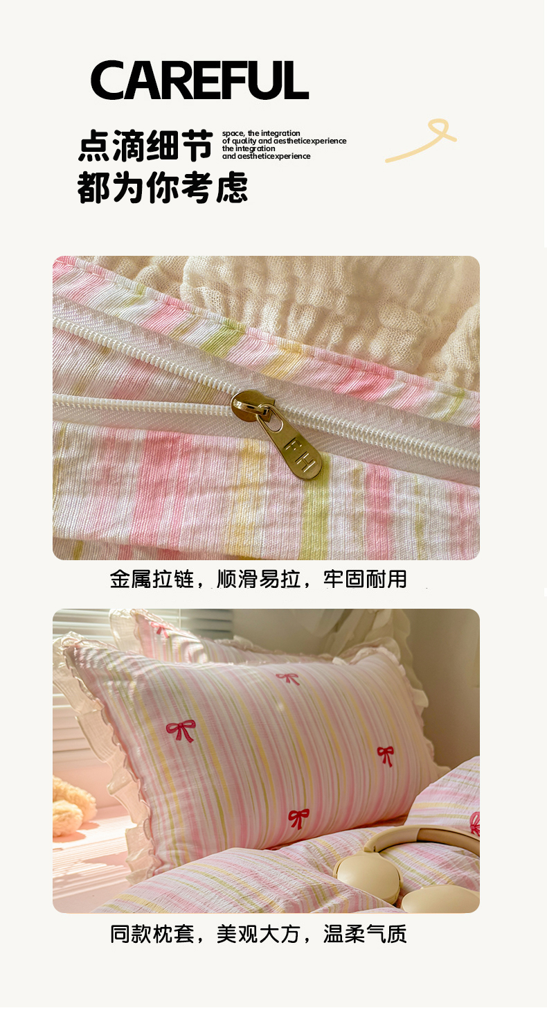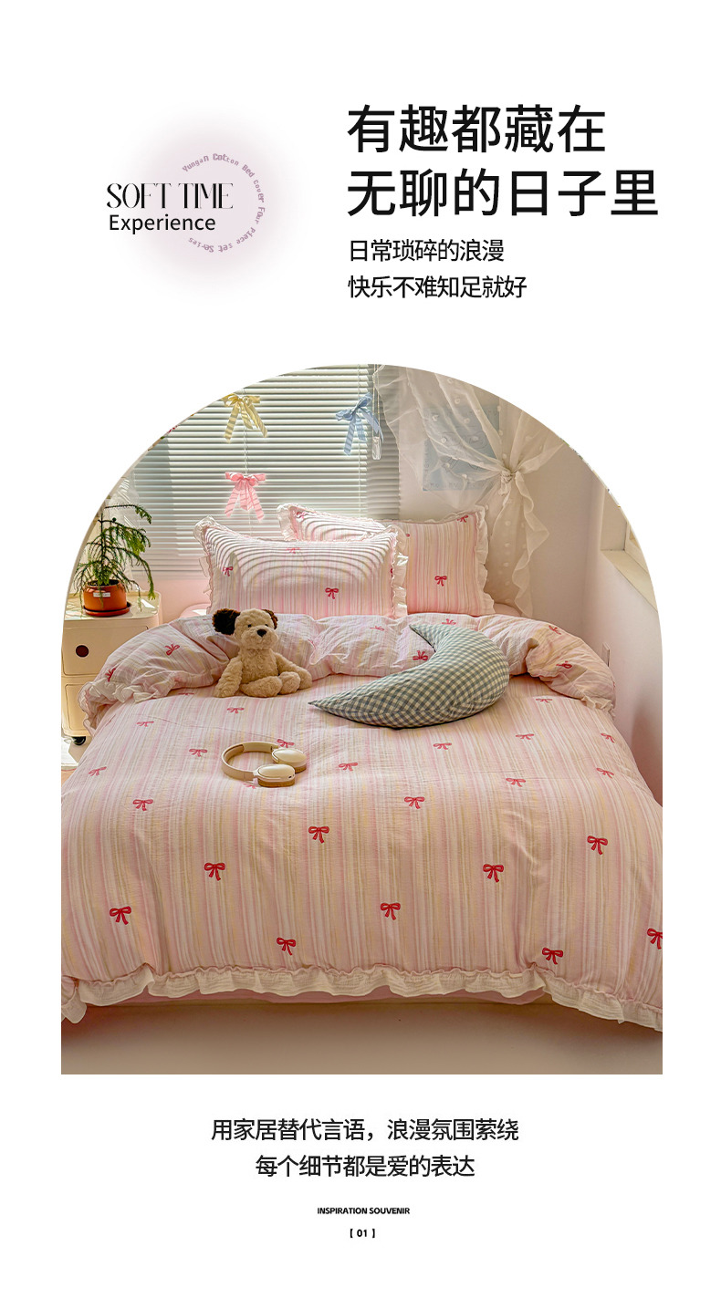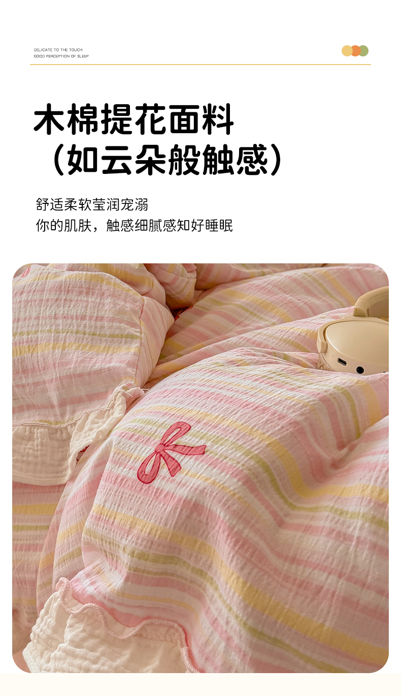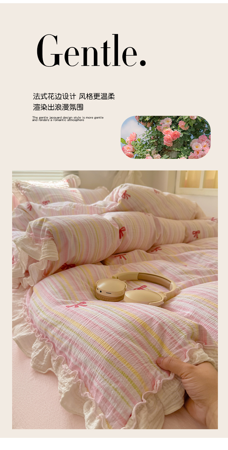当前位置: 91家纺网 > 商品网购 > 床品套件 > 四件套 > 提花四件套 > 繁花家居 2025新款云感棉提花学生季超温柔小花边四件套 一路生花