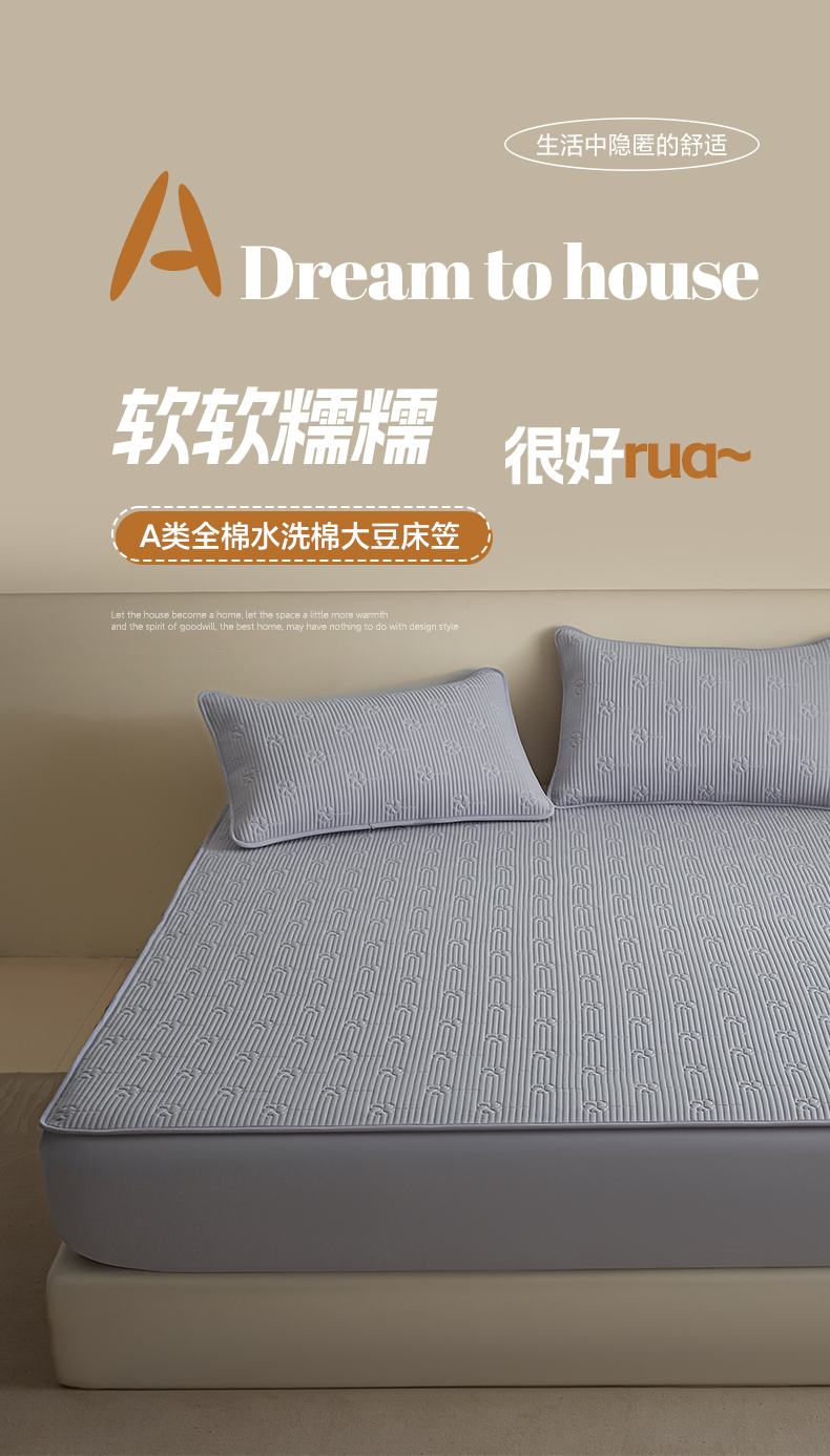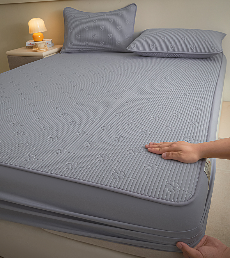 芬晴家纺 2025新款A类全棉夹棉水洗棉大豆床笠-花梦 花梦-浅灰