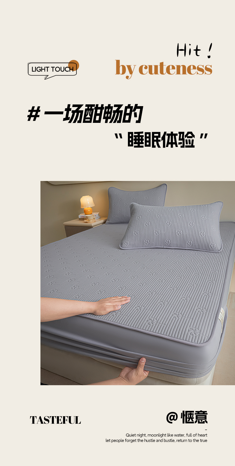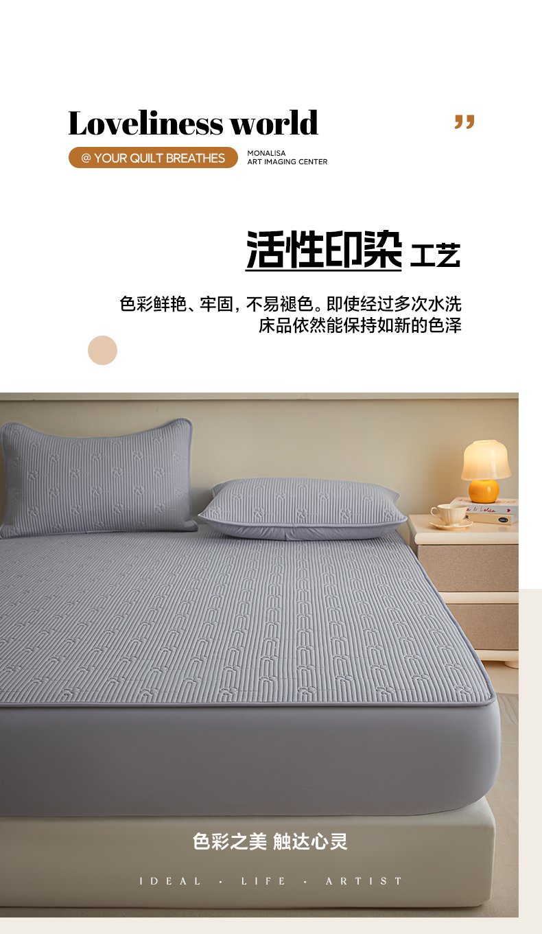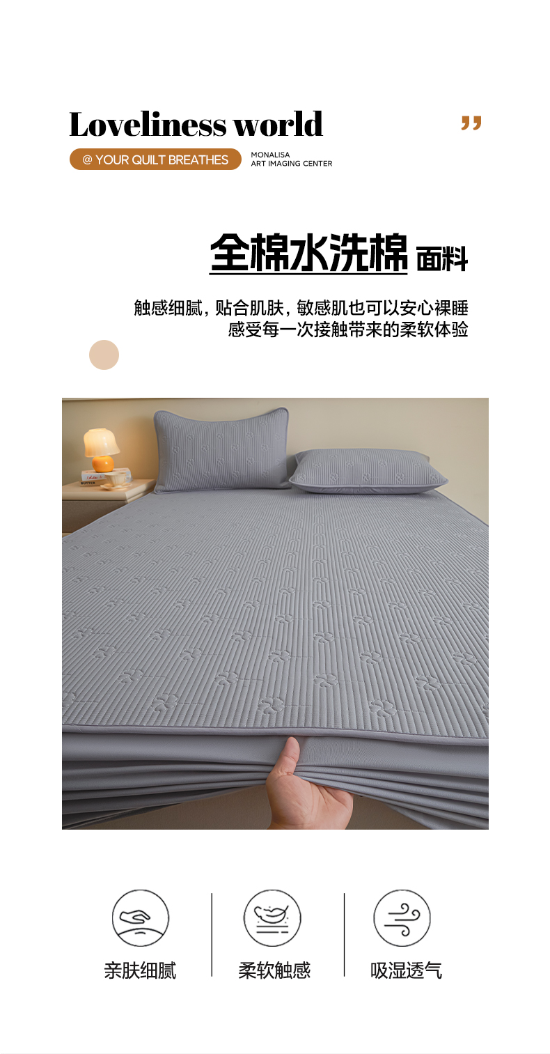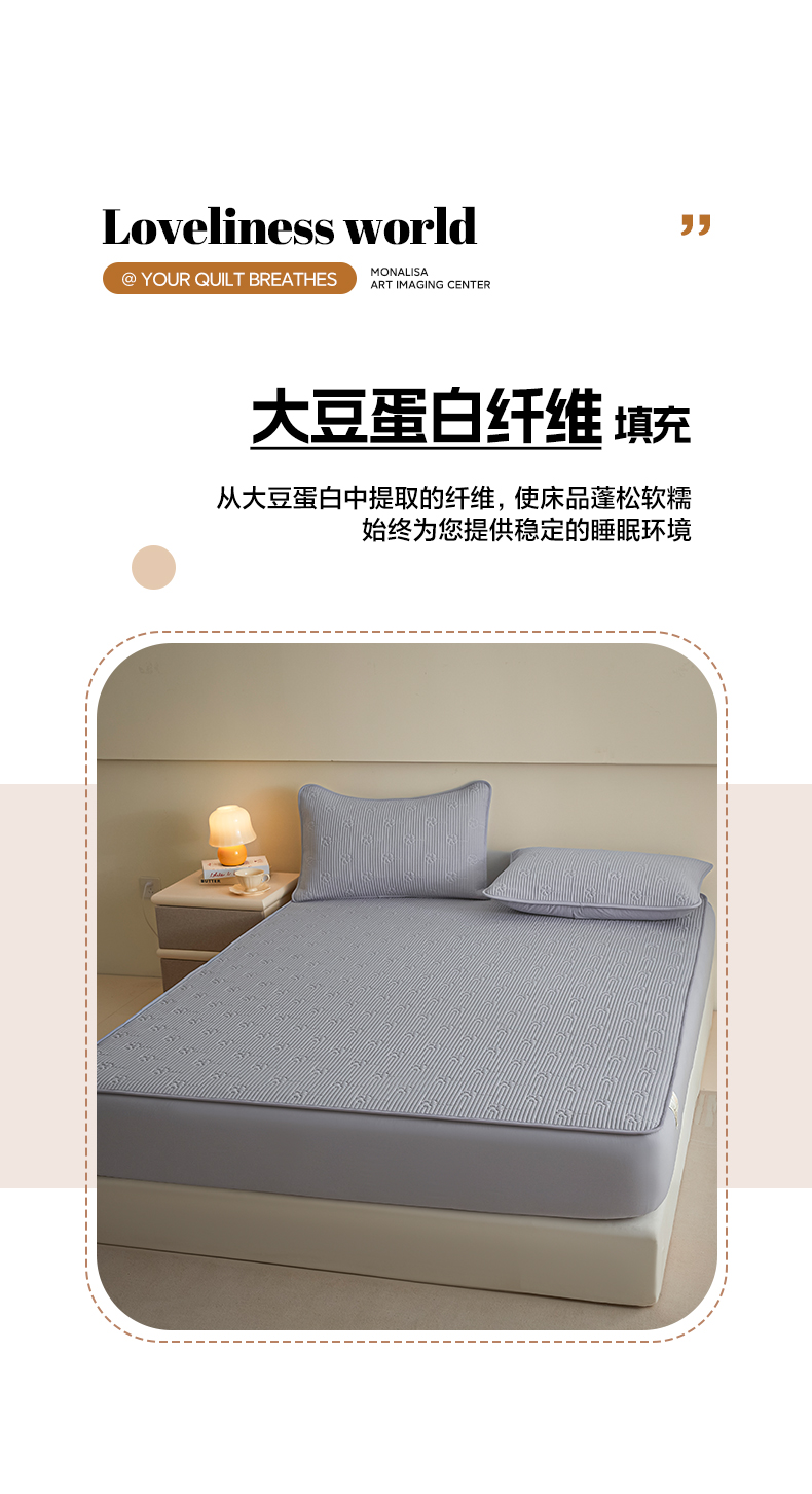 • 91家纺网 家纺一手货源 找家纺 芬晴家纺 2025新款A类全棉夹棉水洗棉大豆床笠-花梦 花梦-浅灰