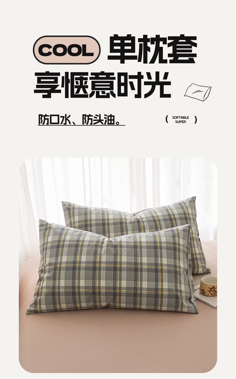 商品名称:芬晴家纺 2025新款A类全棉色织防水枕套系列 防水-光年灰