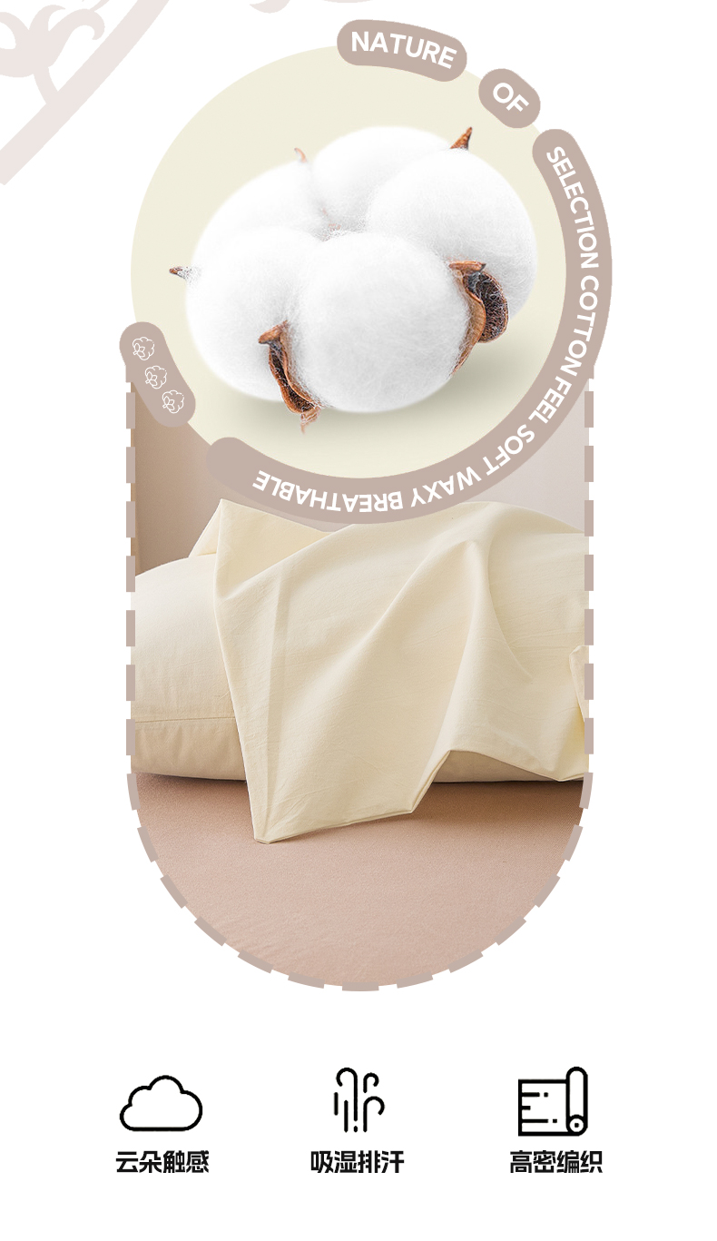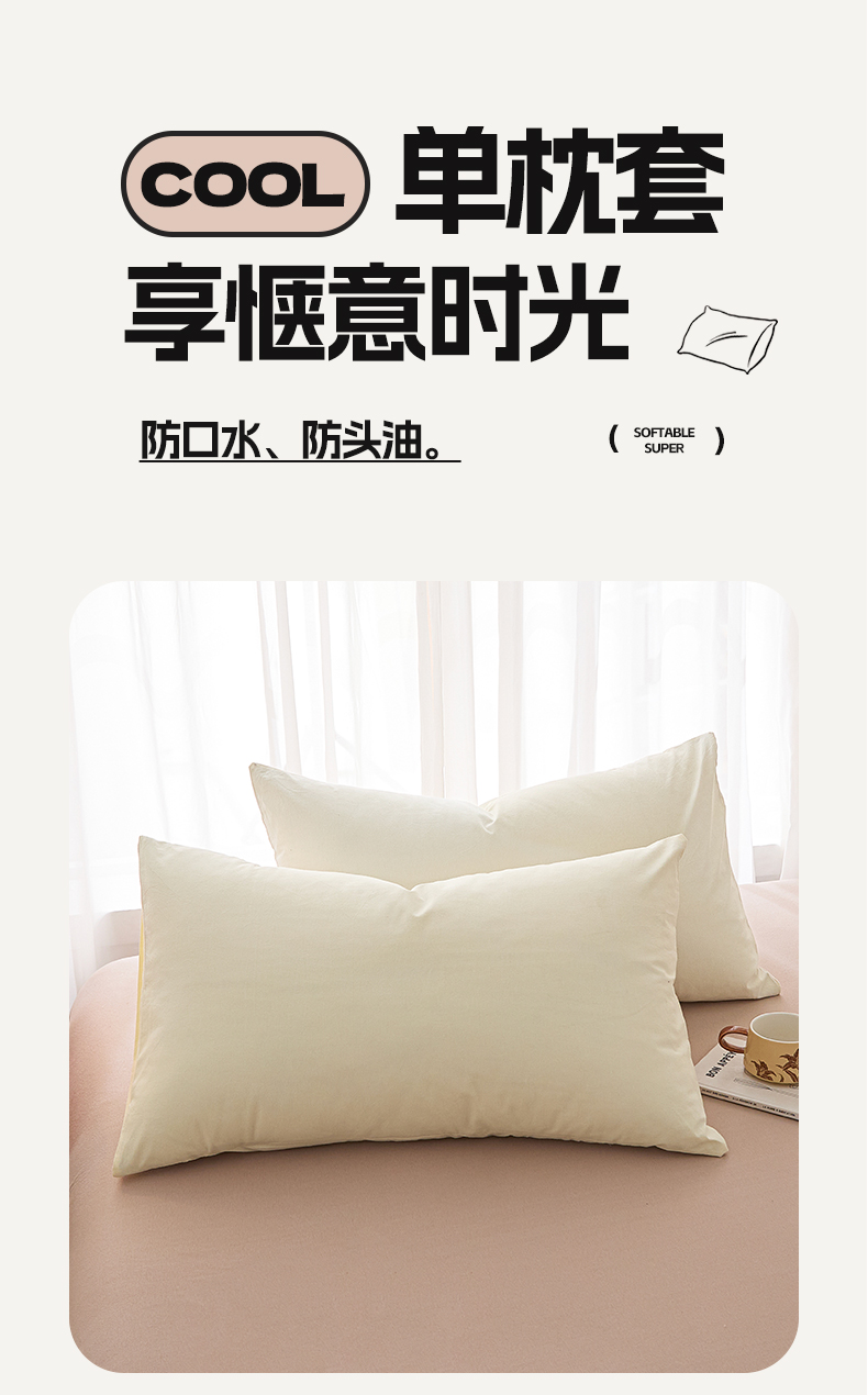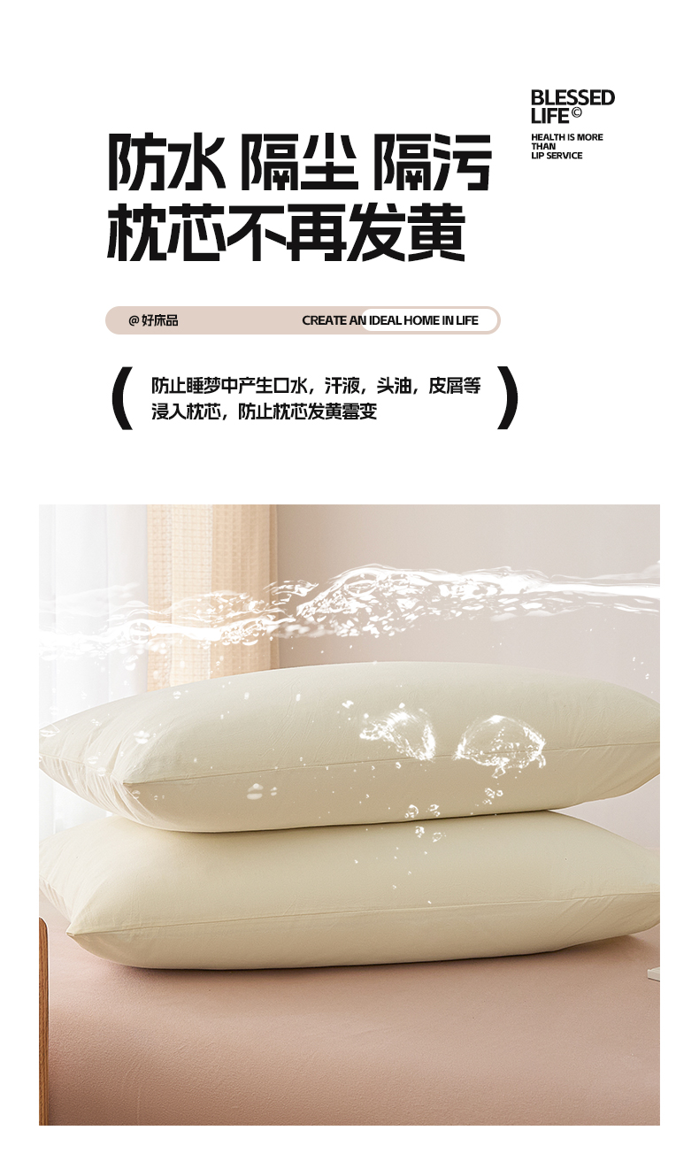 商品名称:芬晴家纺 2025新款A类全棉色织防水枕套系列 防水-奶白