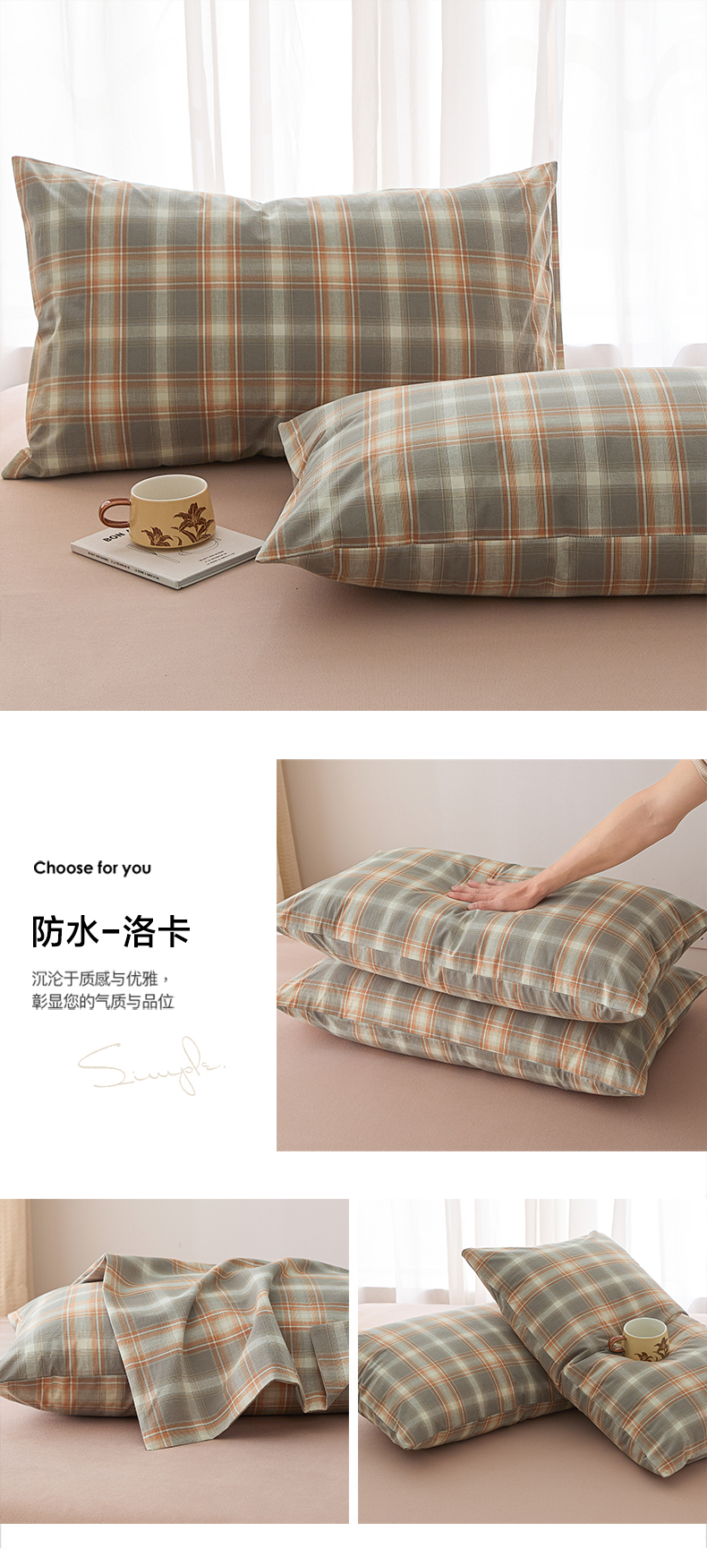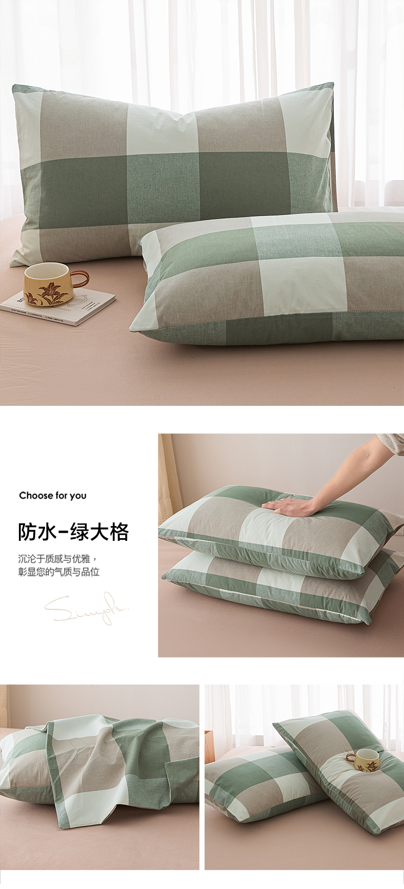 (总)芬晴家纺 2025新款全棉色织棉花枕套,本色,经典格,诺卡,清风-粉,清风-灰,清风-兰,日常