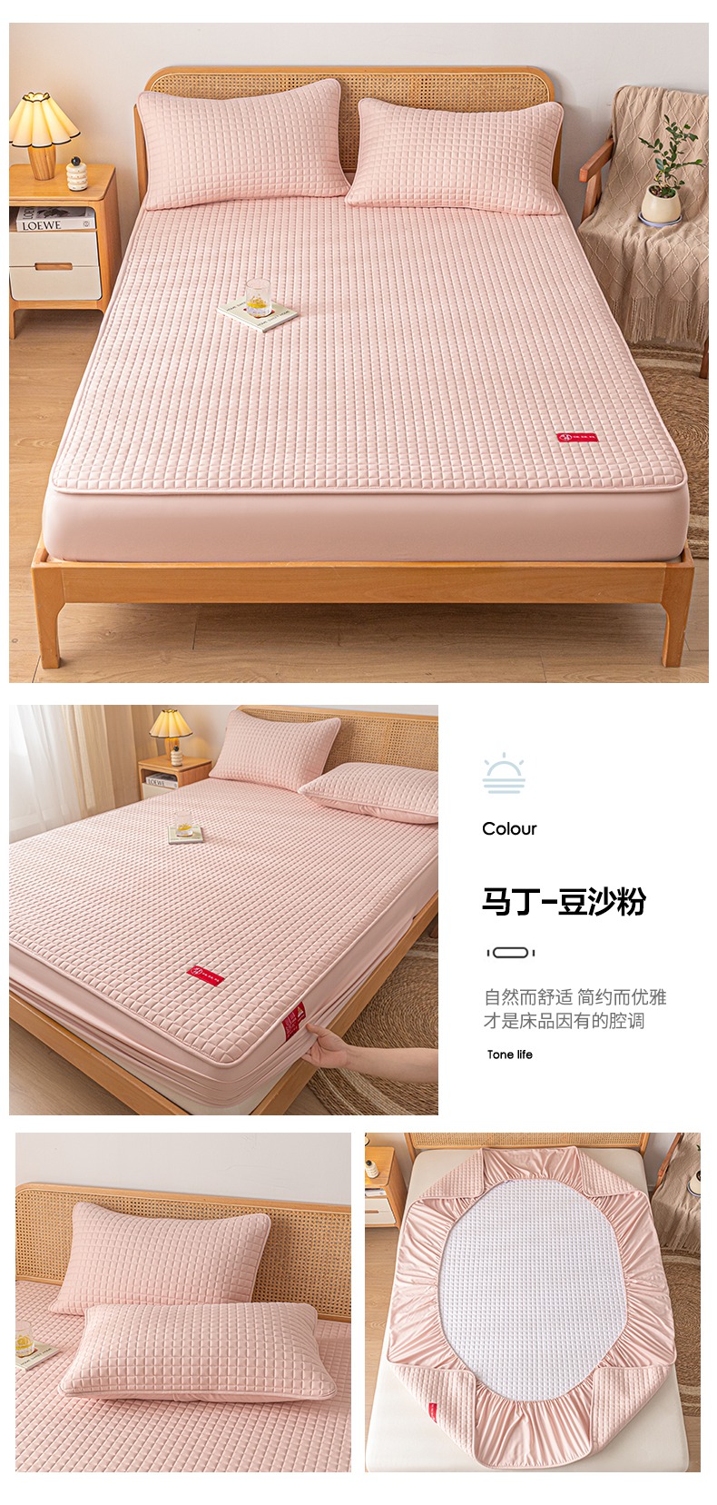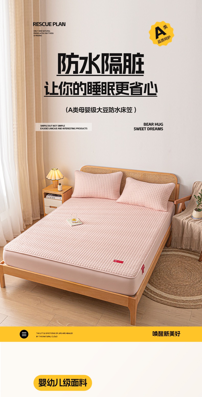 • 91家纺网 家纺一手货源 找家纺 芬晴家纺 2025新款母婴级大豆防水床笠-马丁-风车 马丁-豆沙粉